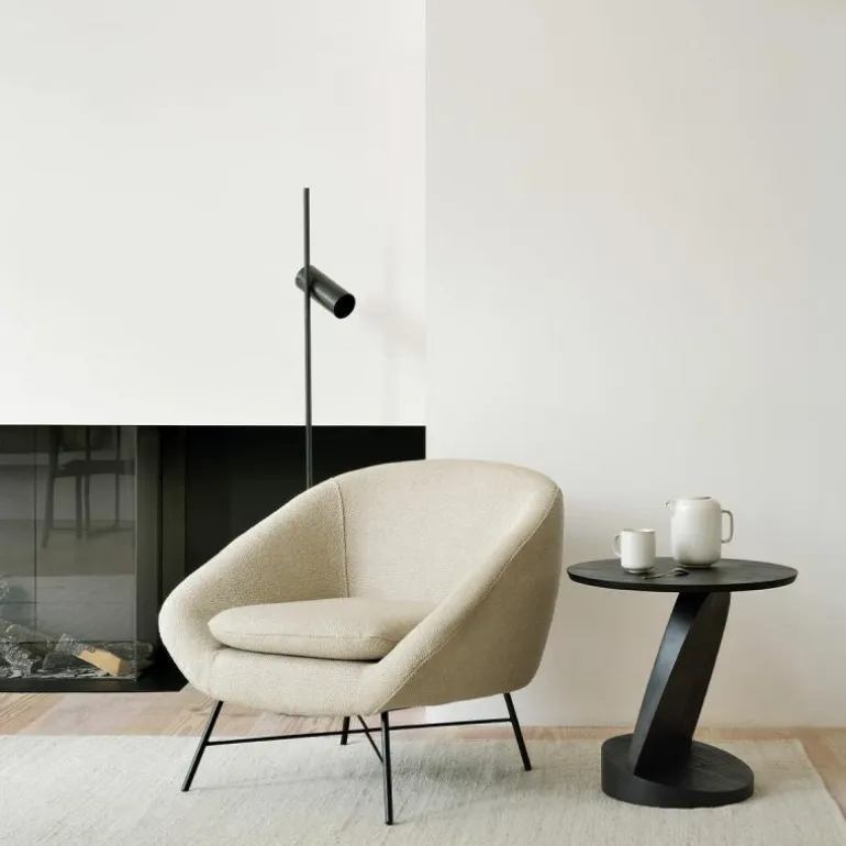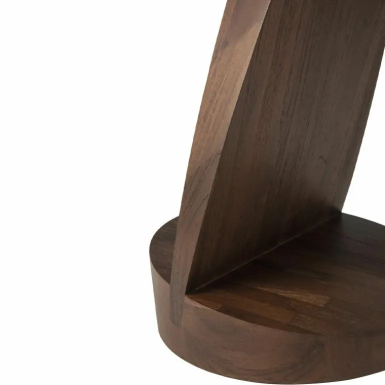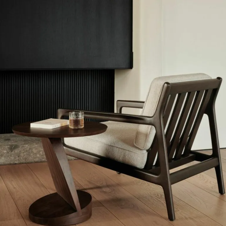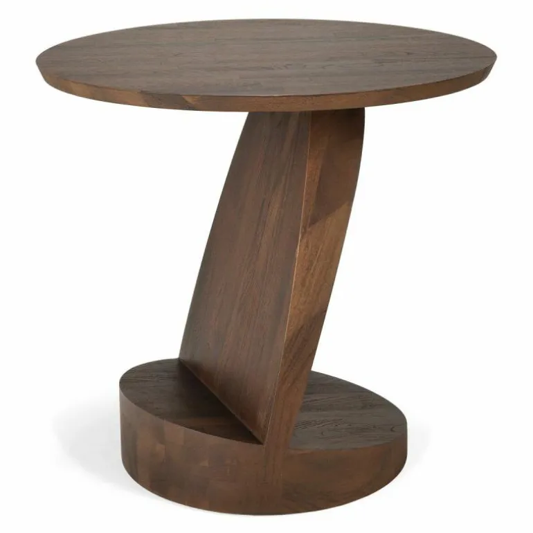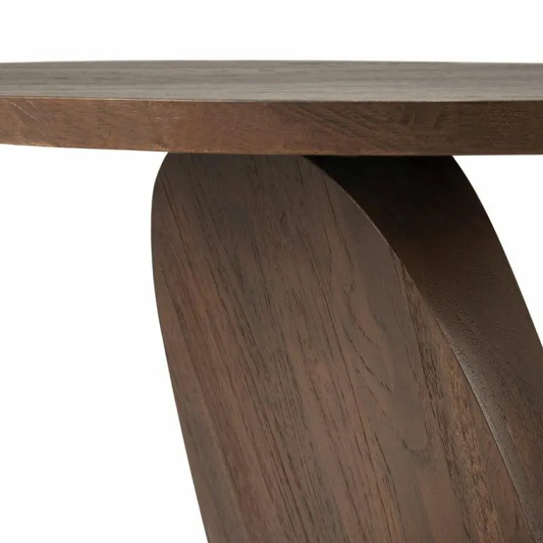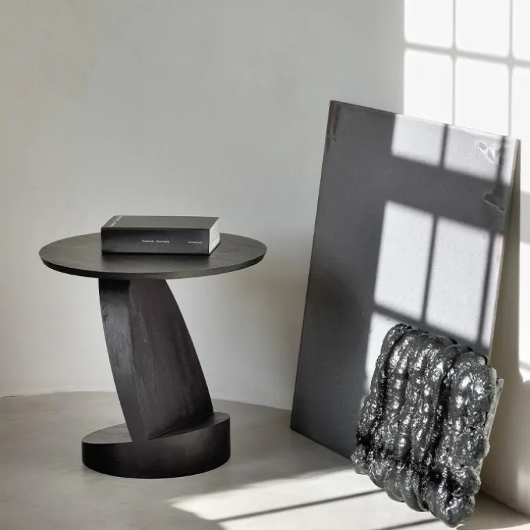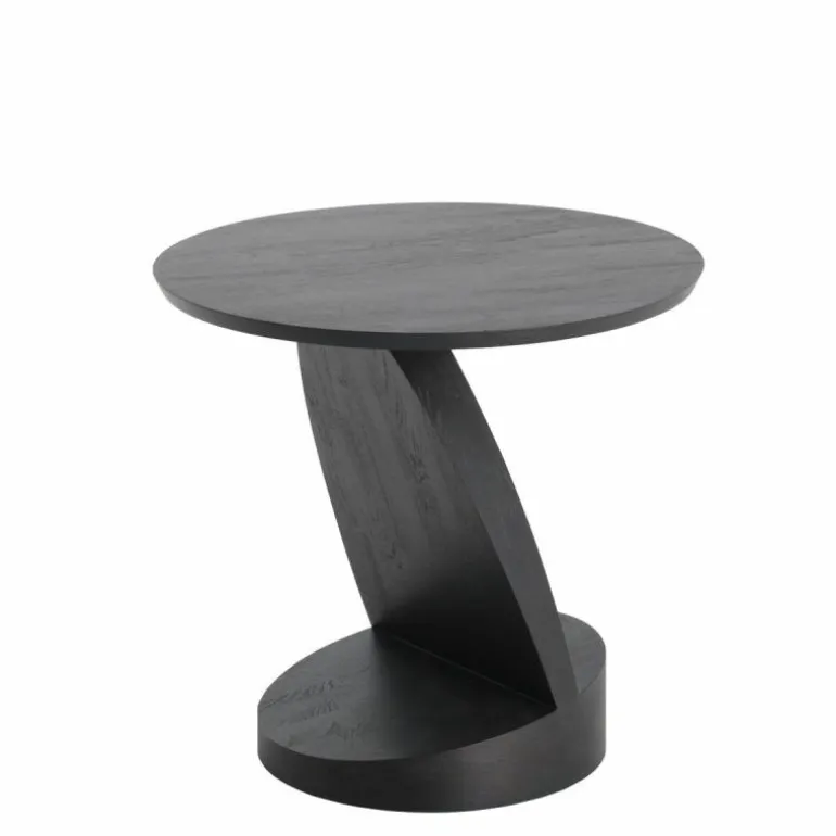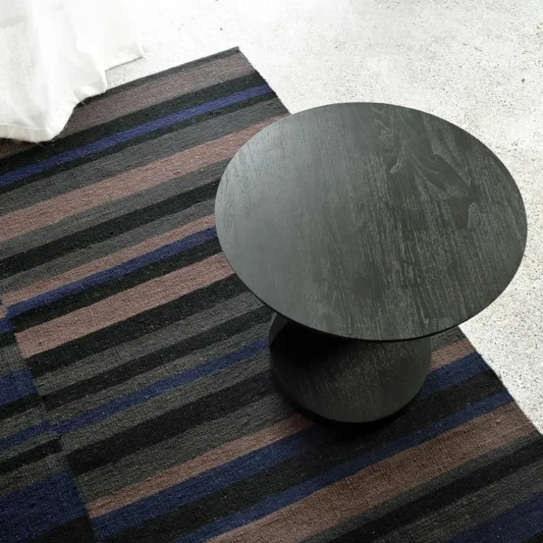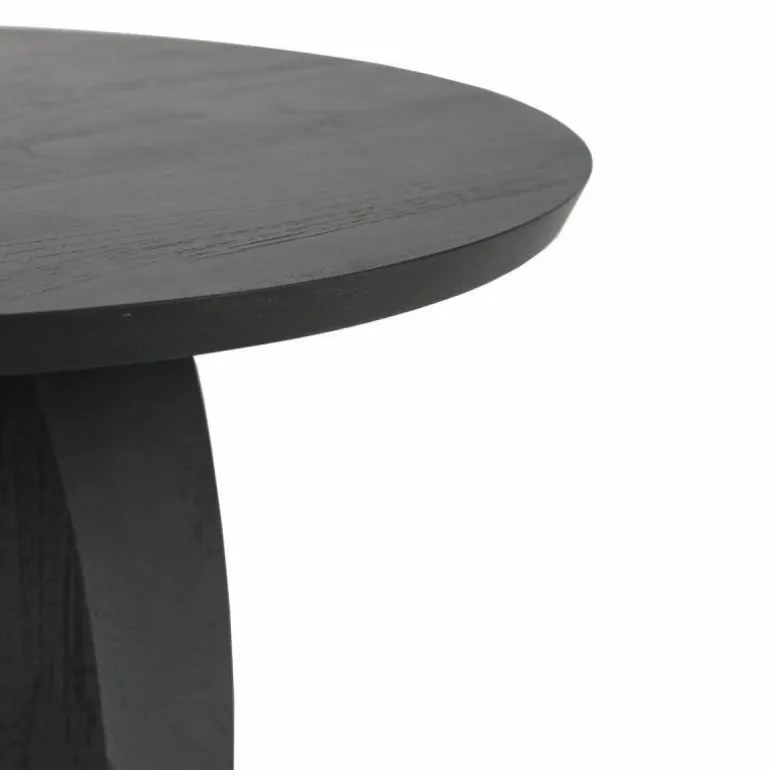 Dit ontwerp is gemaakt van 100% massief teakhout dat met een zwarte of bruine vernislaag is afgewerkt. De beschermende vernislaag dat op het teakhout is aangebracht, zorgt ervoor dat de natuurlijke uitstraling van het tafeltje behouden blijft, maar geeft geen garantie tegen vlekken. Neem vlekken altijd meteen af met een lichtvochtige doek om zo lang mogelijk van de bijzettafel te genieten. De bijzettafel heeft een diameter van 52 centimeter en een hoogte van 49 centimeter. r