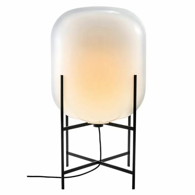De dunne staander van de Oda is gemaakt van metaal en de diffuser is van mondgeblazen glas. Deze schijnt een egaal en sfeervol licht in alle richtingen. Zowel de staander als diffuser zijn er in verschillende kleuren, die op verschillende wijze gecombineerd kunnen worden. r