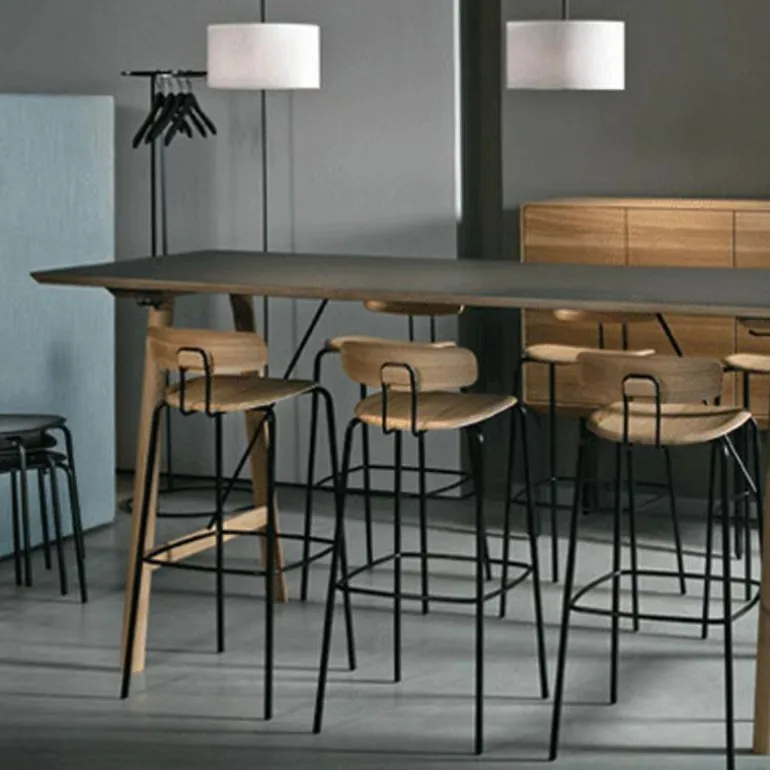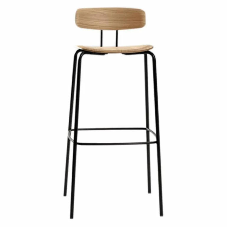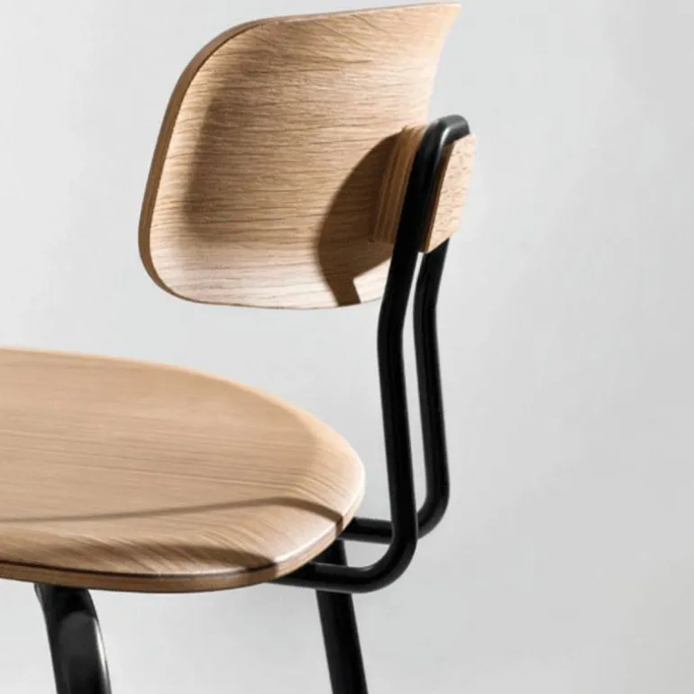 De Okito Ply Barkruk is gemaakt van gefineerd multiplex. Het frame van de kruk is vervaardigd uit zwart gepoedercoat staal. De barkruk is verkrijgbaar zwart beukenhout, eiken, zwart gebeitst eiken, Amerikaans walnoothout en gebeitst eiken. Bij de variant in gebeitst eikenhout is het mogelijk om te kiezen uit verschillende kleuren. Voor de liefhebber van extra comfort is het ook mogelijk de stoel te bestellen met een gestoffeerde zitting. De Okito Ply Barkruk heeft een zithoogte van 80 centimeter.r