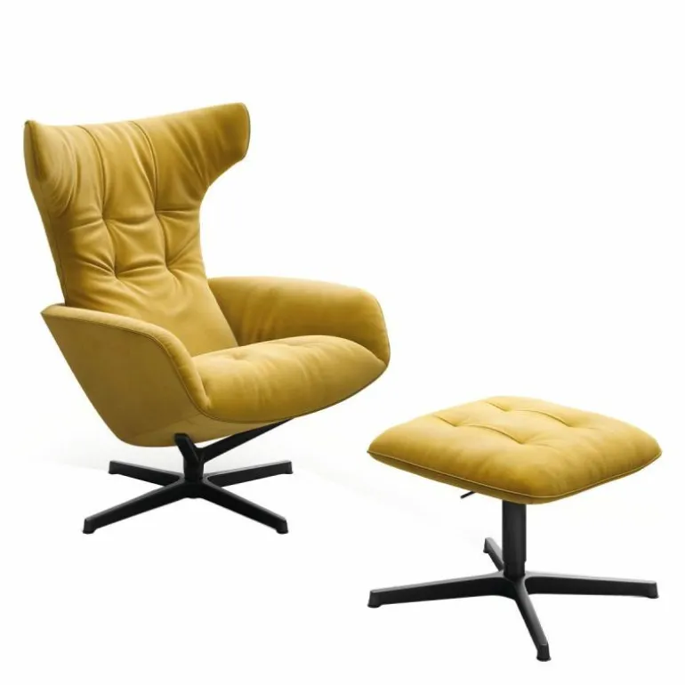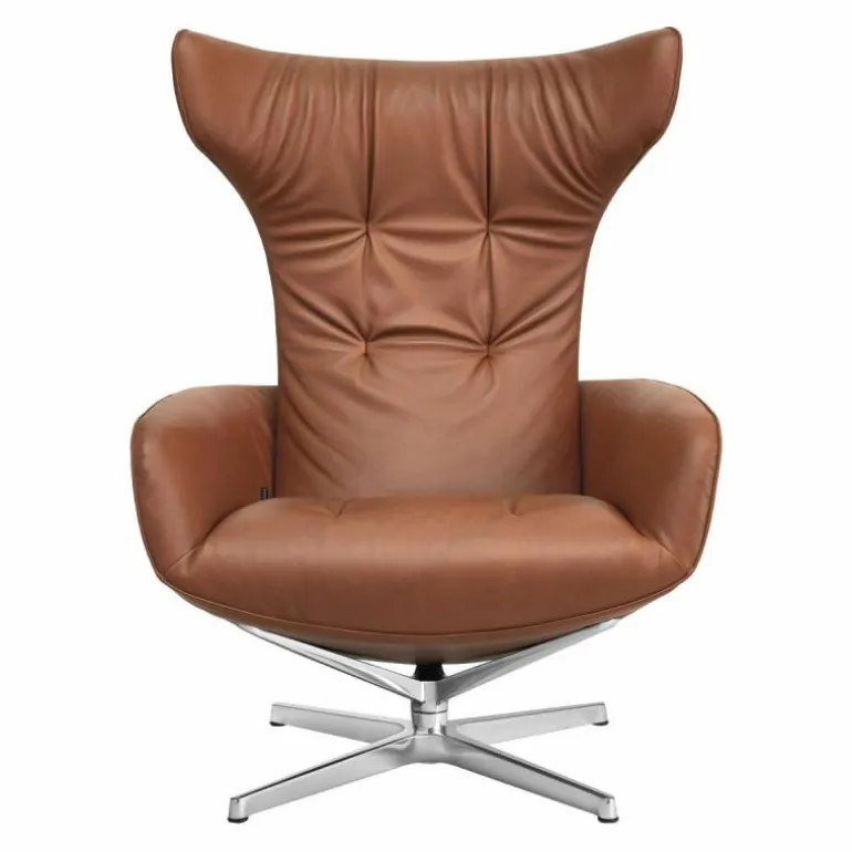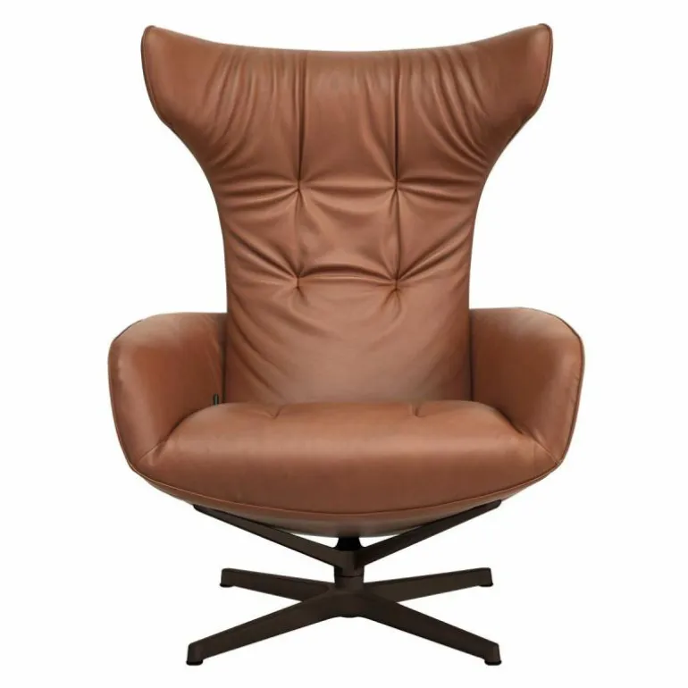 De zachte bekleding en de hoge rugleuning zorgen voor een hoog comfort. De rugleuning kan in vele hoeken geplaatst en vergrendeld worden doormiddel van een lederen riem op het zitkussen. Het onderstel, dat 360 graden kan draaien, is verkrijgbaar in drie afwerkingen gepolijst chroom, gepoedercoat mat brons of gepoedercoat mat zwart. De bekleding is in veel verschillende stofferingen mogelijk. De Onsa Loungestoel heeft een diepte van 90 centimeter een breedte van 78 centimeter, een hoogte van 108 centimeter en een zithoogte van 44 centimeter. Drapeer uw favoriete plaid over de loungestoel en kruip heerlijk weg om urenlang te loungen. r