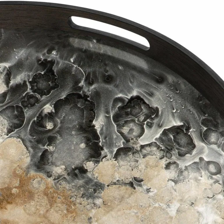 Het Ethnicraft Organic Dienblad Rond is een glasontwerp van Dawn Sweitzer en behoort tot de Organic serie. In de serie wordt een onderscheid gemaakt tussen dienbladen die te combineren zijn met tafels van Ethnicraft en dienbladen in kleinere afmetingen die perfect dienen als decoratie. Het Organic Dienblad bestaat uit rijke patronen in combinatie met gedempte tonen. Dit maakt het Organic Dienblad een elegante toevoeging in elke ruimte. Het samenspel van de kleuren en materialen maakt het dienblad een prachtig accessoire in uw interieur.r