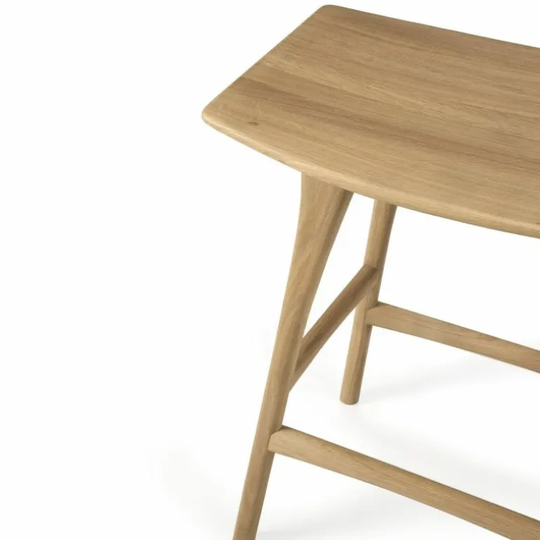 De natuurlijk eiken kruk worden afgewerkt met een natuurlijke olie die ze niet alleen laat stralen, maar ze ook beschermt tegen de meest voorkomende vloeistoffen. Hoewel de Osso barkruk is voorzien van deze beschermlaag, zijn niet alle vlekken te voorkomen. Verwijder vlekken daarom direct met een licht vochtige doek en milde zeep. Ethnicraft raadt aan de kruk na een aantal jaren overnieuw te behandelen met een coating voor eikenhout, hiervoor kunt u de Hardwax Oil van Ethnicraft direct mee bestellen. U kunt deze prachtige kruk ook bestellen in een donkere variant, deze is behandeld met een zwarte vernislaag.