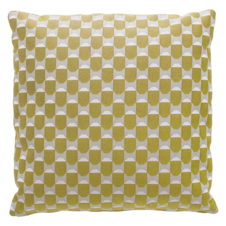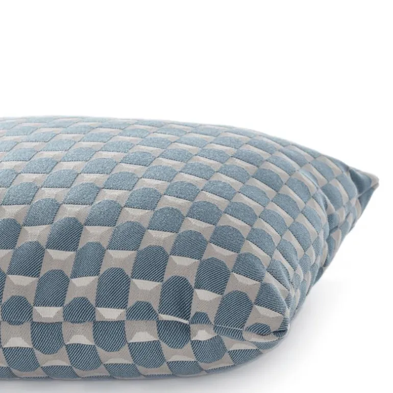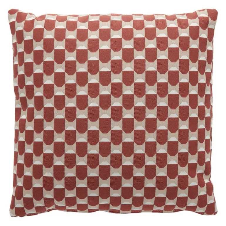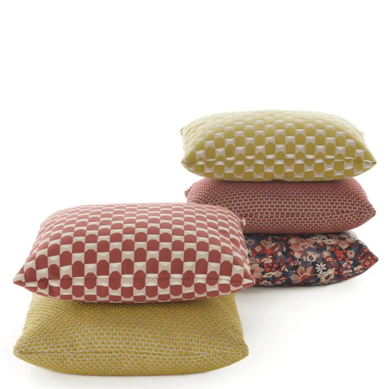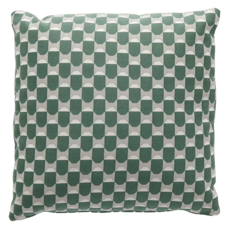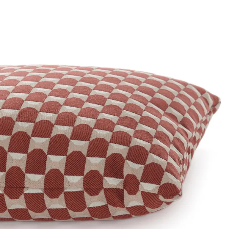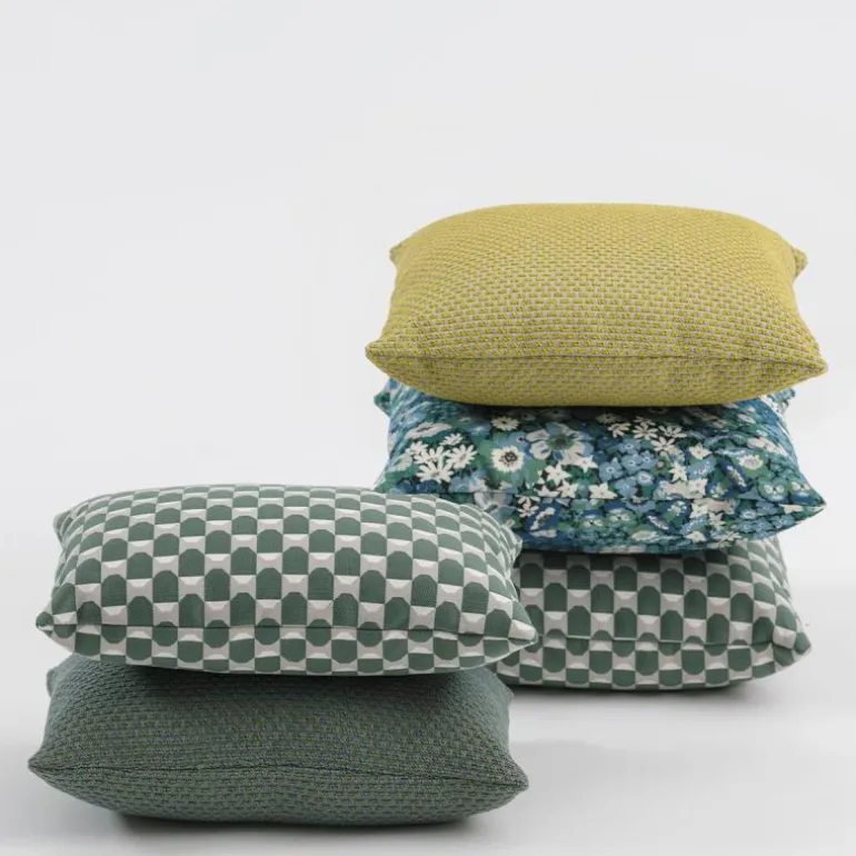 De Obi Check-stof is speciaal ontwikkeld voor gebruik in openluchtomstandigheden en biedt optimale bestendigheid tegen zonlicht, vocht en dagelijks gebruik. Dankzij de duurzame materiaalsamenstelling blijft de stof kleurvast en vormstabiel, zelfs bij langdurige blootstelling aan de elementen. De rijke textuur en het geometrische motief geven de kussens een eigentijdse signatuur, waarmee ze moeiteloos fungeren als blikvanger binnen een buitenlounge, zithoek of pooldeck.