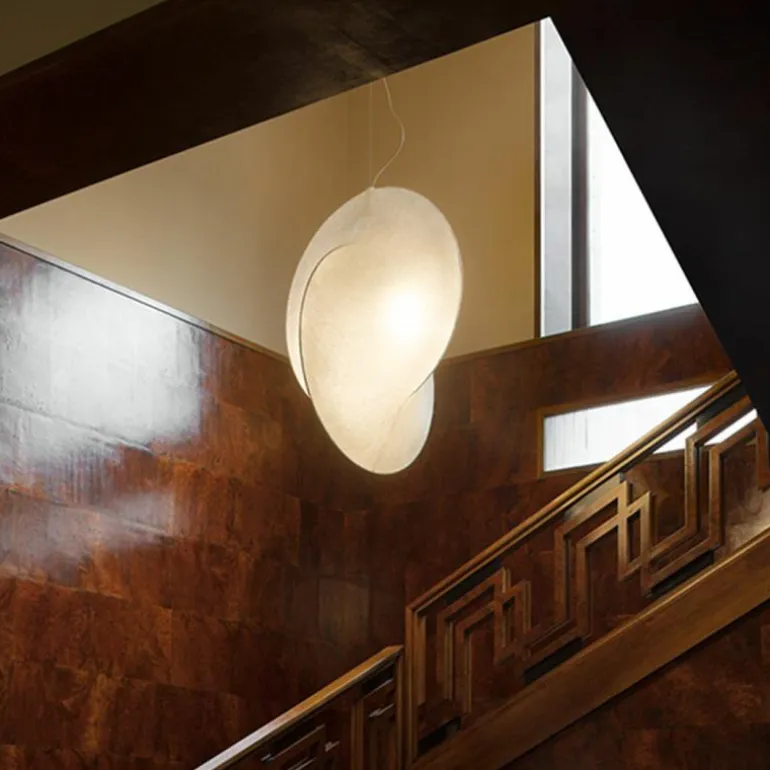 De Overlap Hanglamp is verkrijgbaar in een Small (Ø65 x h. 82 cm) en Large (Ø100 x h. 126 cm.) uitvoering. Ze zijn voorzien van één (Small) of twee (Large) E27 fittings voor een halogeen lichtbron met een vermogen van 105 Watt. Deze wordt niet standaard meegeleverd maar de door FLOS aangeraden lichtbron kunt u wel direct bijbestellen. De lamp hangt aan een koord van maximaal 4 meter en wordt geleverd met gepolijste en vergulde plafondkap.