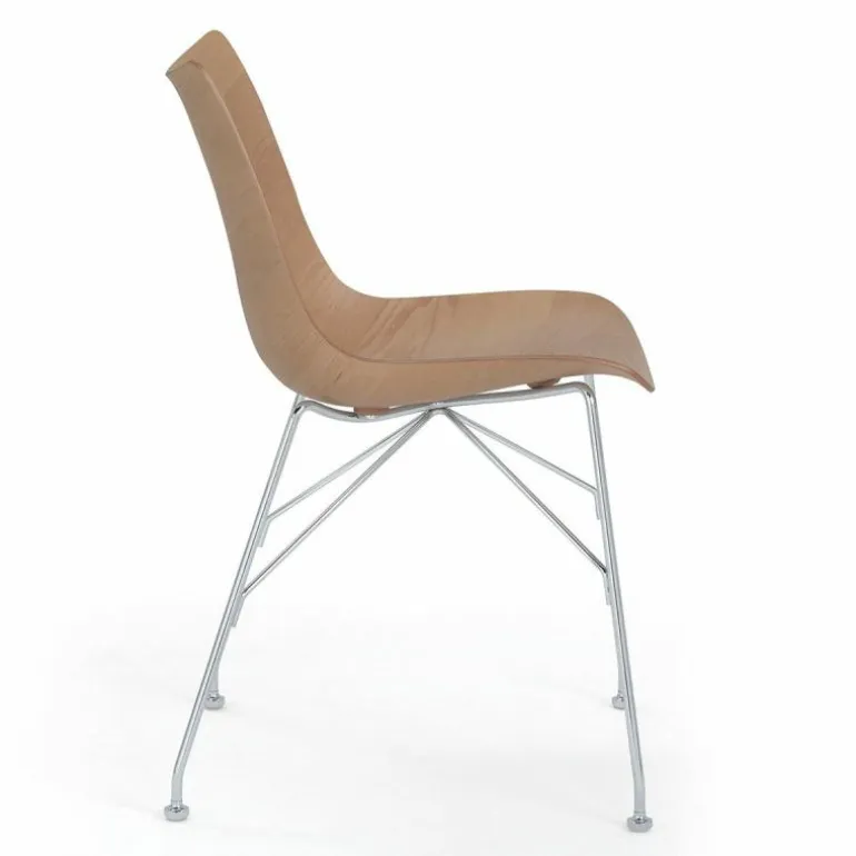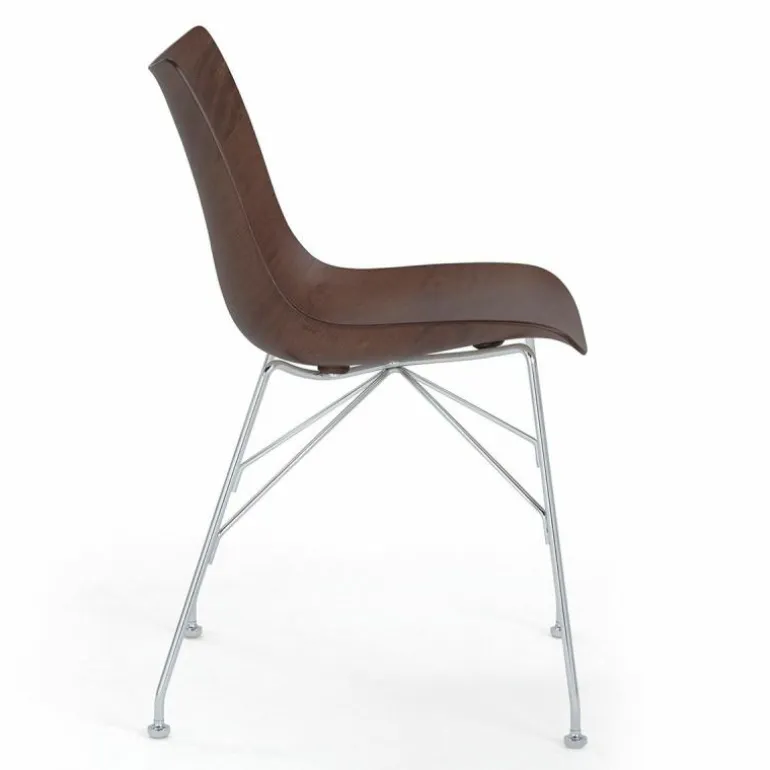 De serie bestaat uit de P/Wood stoel, de deels gestoffeerde Q/Wood stoel, de deels gestoffeerde K/Wood fauteuil en een bijpassende S/Wood poef. De P/Wood uit deze serie bestaat uit een zitschaal van 100% gevormd hout met een fineer van beuken/eiken] of essenhout. Het frame onder de zitting is gemaakt van staal, voorzien van een verchroomde of geverfde afwerking. De P/Wood stoel is een combinatie van geavanceerde industriële technologie met de natuurlijkheid van hout, wat resulteert in dat elk model een uniek natuurlijke uitstraling heeft en licht af kan wijken van de foto. De overige modellen uit de Smart Wood collectie kunt u vinden bij de productfamilie, onderaan de pagina.
