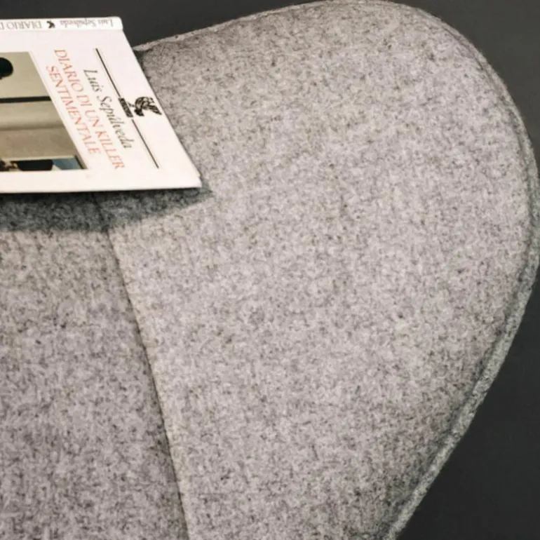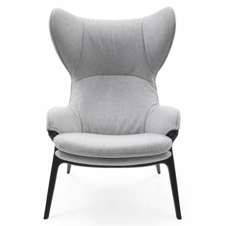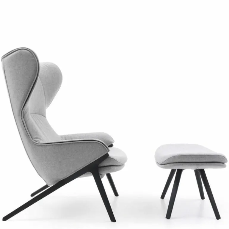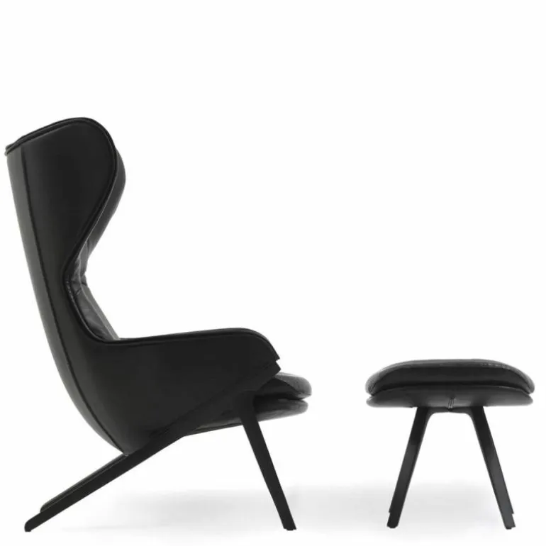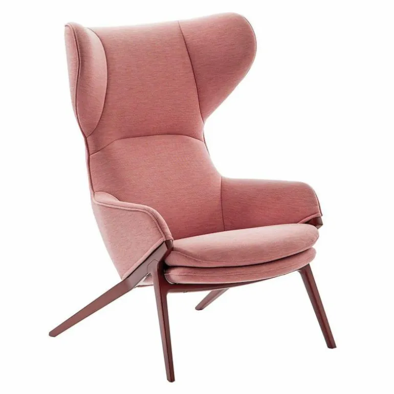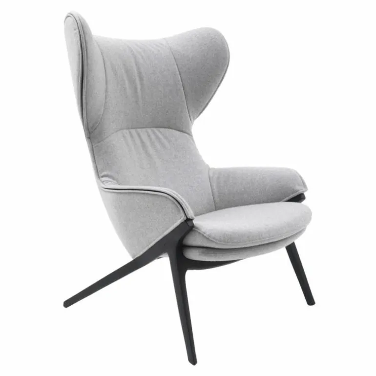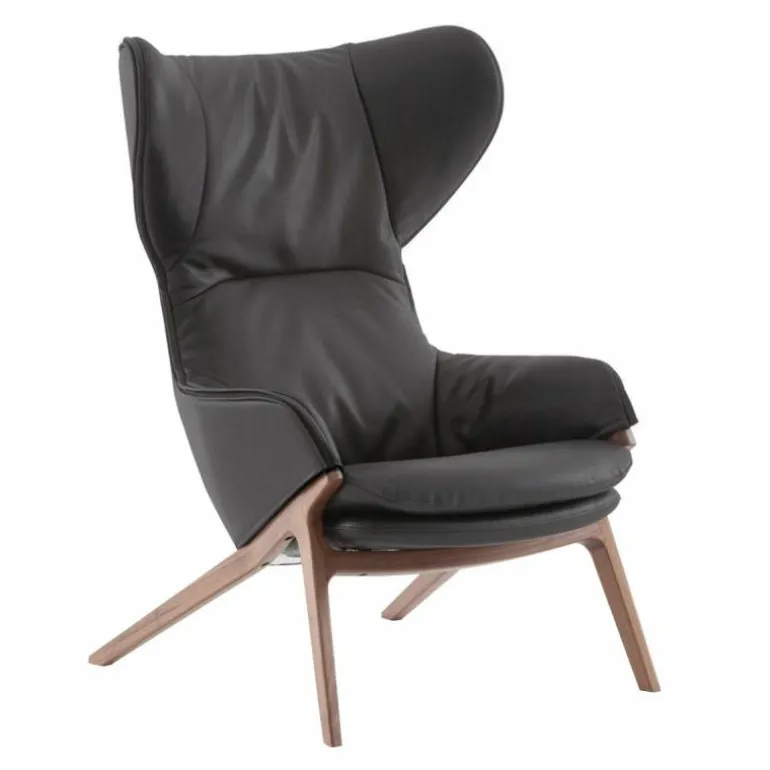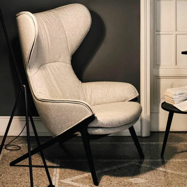 Het duale karakter van de stoel komt terug in de bekledingsmogelijkheden voor de loungestoel, waarbij het interieur en exterieur van een verschillende stof of leersoort voorzien kunnen worden. r