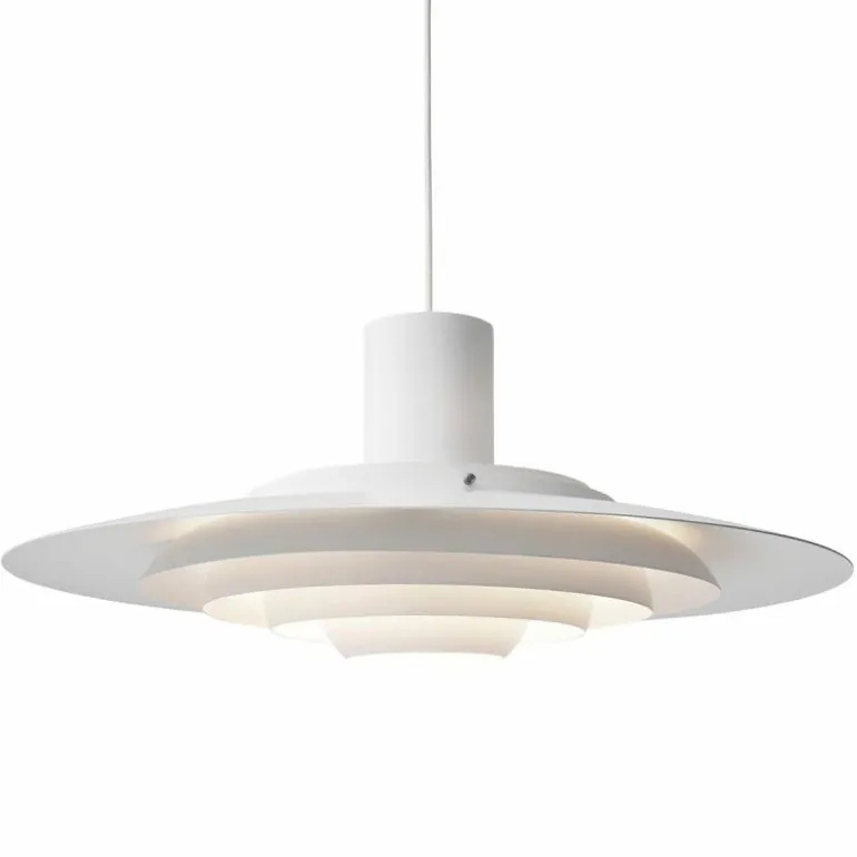 De herontdekte designklassieker is verkrijgbaar in puur aluminium of als witte variant en in twee afmetingen (KF1 Ø47,5 and the KF2 Ø70). Zo is deze klassieke doch altijd moderne lamp haast overal wel toe te passen! Een bijpassende plafondkap is inbegrepen.