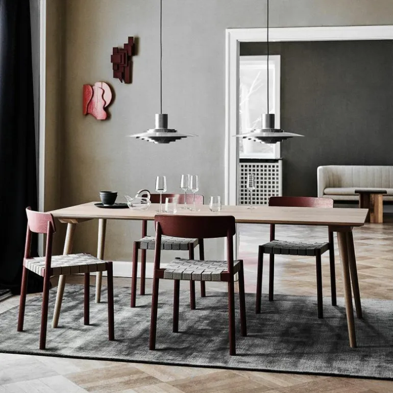 De sculpturale P367 weergalmt architectuur met zijn eigentijdse silhouet dat als het ware uit vijf lampenkappen bestaat die deels over elkaar zijn geplaatst. Doordat ze zachtjes naar het midden buigen schijnt de lamp een diffuus licht. De lamp is gemaakt van met de hand gesponnen aluminium.r