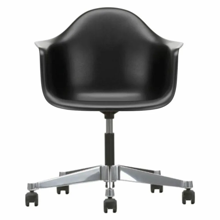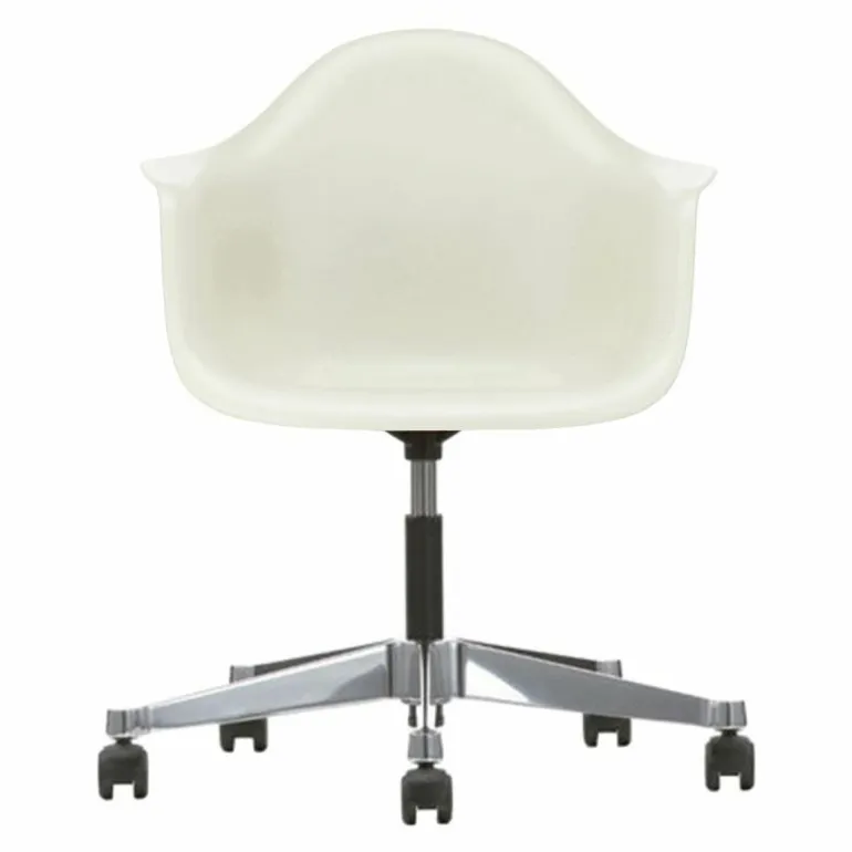 De PACC Bureaustoel maakt deel uit van de zeer uitgebreide collectie van Vitra en is bedacht door het echtpaar Charles & Ray Eames. De Amerikaanse designers Charles Eames, geboren in 1907, en Ray Kaiser-Eames, geboren in 1912, zijn in het jaar 1930 gezamenlijk een architectenbureau begonnen. Een hele goede zet bleek later! De combinatie van architectuur en schilderkunst – Charles afgestudeerd als architect aan de Washington University in St. Louis, Ray Kaiser die schilderkunst heeft gestudeerd aan de Bennett College in Millbrook – bleek een onverwachtse maar perfecte combinatie. Samen werkten zij op het gebied van moderne architectuur en meubilair, industriële en grafische vormgeving, beeldende kunst en film. Niet alleen wat betreft werk bleek dit duo een goede combinatie. In 1941 stapten zij met elkaar in het huwelijksbootje. De waardering voor het werk van dit duo blijkt onder andere uit het feit dat het grote MoMa in 1973 een tentoonstelling organiseerde, speciaal voor het werk van het echtpaar Eames onder de naam ‘Furniture by Charles Eames’. In de vele jaren die zijn verstreken heeft het echtpaar bovendien met vele designlabels samengewerkt, onder andere met designlabel Vitra. Zowel wat betreft waarden, oriëntering als doelstellingen hebben zij het Zwitserse Vitra flink weten te beïnvloeden én te inspireren. Vitra ontwerp op het gebied van accessoires, meubels en verlichting alle lange tijd de meest prachtige designs. r