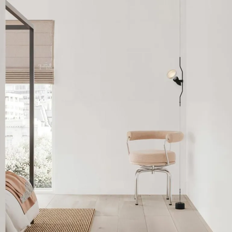 De lampkop is vervaardigd uit zwart geïnjecteerd elastomeer en bevat een geïntegreerde aan en uit schakelaar. De lichtbron levert directe verlichting en is geschikt voor functionele toepassingen zoals leeslicht, werkverlichting of accentverlichting. De plaatsing van de lampkop langs de kabel maakt het mogelijk het licht nauwkeurig te richten op specifieke zones binnen een ruimte. De voedingskabel vanaf de lamphouder heeft eveneens een lengte van circa 4000 millimeter, wat flexibiliteit biedt bij aansluiting en positionering.