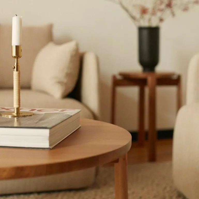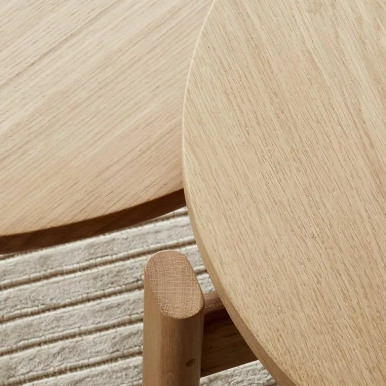 De Menu Passage Salontafel is een ontwerp van Krøyer-Sætter-Lassen en behoort tot de Passage serie. De tafel beschikt over een warme uitstraling en brengt met zijn rustgevende ronde vormen een gevoel van sereniteit in de ruimte. Het ronde blad wordt gedragen door vier smalle maar sterke poten, die langs het blad omhoog komen. De afstandsbediening, een mooi interieurboek of een prachtige vaas met seizoensbloemen: alles kunt u op deze salontafel kwijt.r