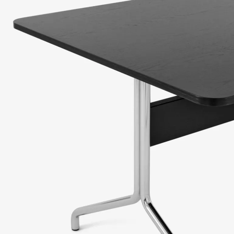 De tafelbladen zijn gemaakt van MDF met een prachtige afwerking van gelakt fineer, dit is een contrast met de poten van de tafel. De poten zijn gemaakt van gebogen stalen buizen wat weer zorgt voor een meer organisch gevoel. Dan nog het grootste pluspunt: de tafel is verkrijgbaar in meerdere prachtige combinaties. Voor het blad heeft u de keuze uit drie verschillende fineer afwerkingen, namelijk: Clear Lacquered Oak, Black Lacquered Oak en Lacquered Walnut. Deze drie mogelijkheden zijn te combineren met twee kleur opties voor de poten, hier zijn namelijk de keuzes uit een Chrome onderstel of Matt Black. r