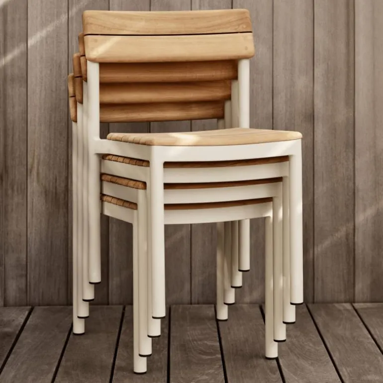 De stoel is ontworpen met oog voor comfort, wat hem bijzonder geschikt maakt voor langdurig gebruik, bijvoorbeeld tijdens diners in de buitenlucht. De ergonomische vorm van de rugleuning en zitting ondersteunt het lichaam, terwijl de royale proporties een ontspannen zitervaring mogelijk maken. Door het lichte gewicht is de stoel eenvoudig te verplaatsen en kan hij flexibel in de buitenruimte worden ingedeeld. Daarnaast is het ontwerp stapelbaar tot vier stuks, waardoor de stoelen praktisch zijn op te bergen wanneer ze niet in gebruik zijn.