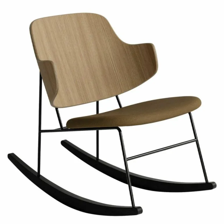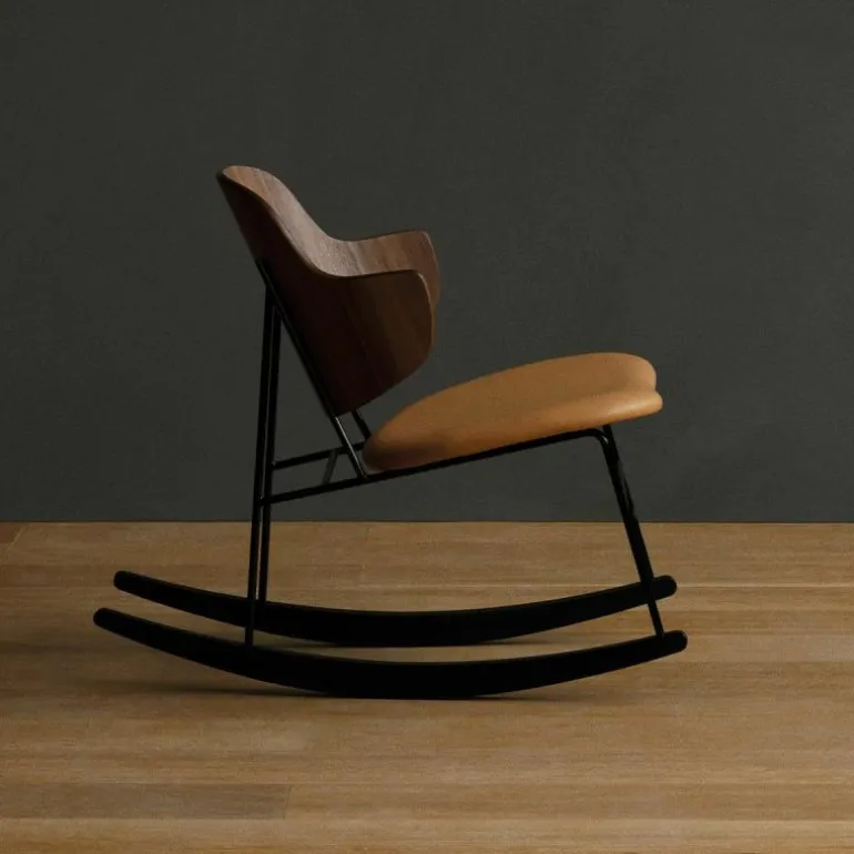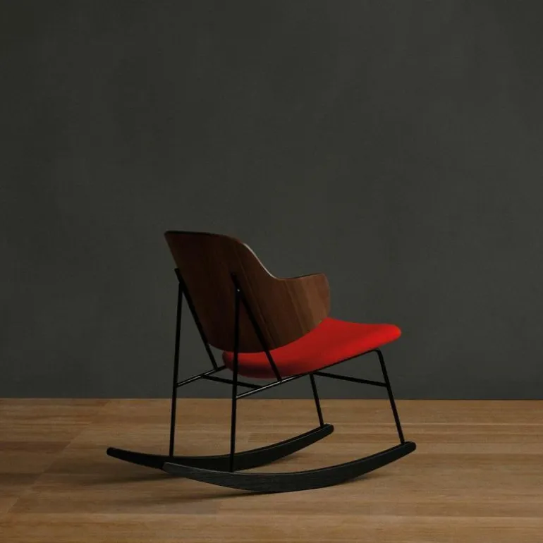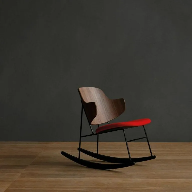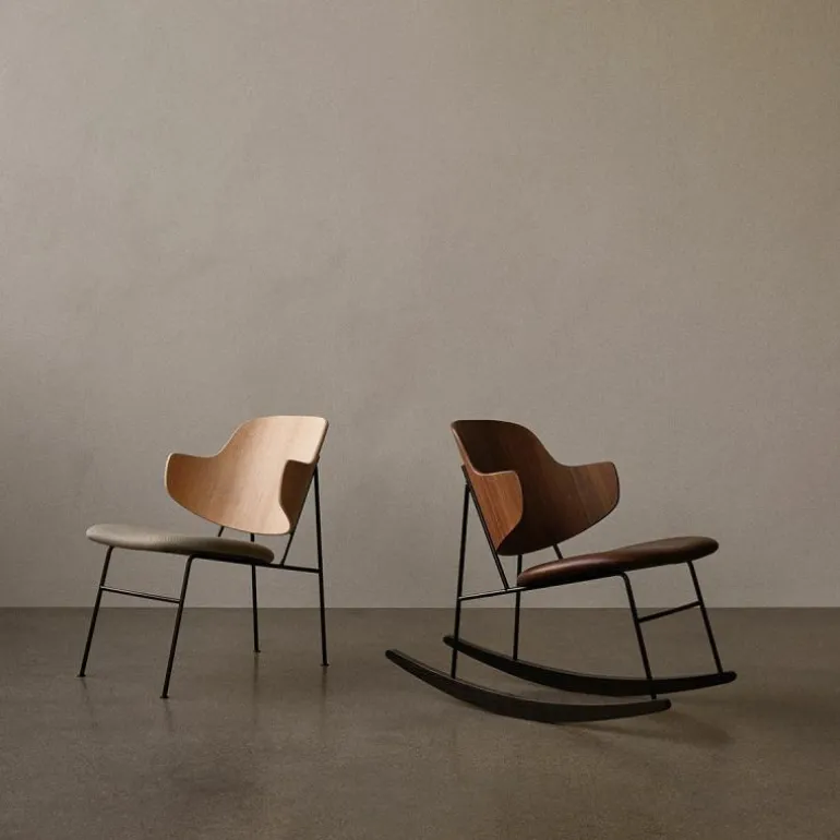 Toen de originele Penguin Stoel in de Verenigde Staten onder de aandacht werd gebracht, werd het meubel ook wel de Ib Kofod-Larsen Chair genoemd. Hiermee drukte de Deense designer een stempel op zijn naam. Het succes van de stoel ligt in de aandacht voor detail. Van de naadloze overgangen tot de verfijnde afwerking: elk aspect getuigt van waar vakmanschap van Kofod-Larsen en Audo Copenhagen. Anders dan de eetkamerstoel is de schommelstoel afgeleid van het Amerikaanse modernisme uit de jaren vijftig en zestig. Dit is terug te zien aan zijn royale proporties, sculpturale vormen en organische rondingen. De schommelende beweging zorgt voor een dynamische zitbeleving waarbij veel houdingen aangenomen kunnen worden. Naast zijn comfort, blinkt de schommelstoel tevens uit in zijn esthetiek. Hierdoor is het ontwerp niet alleen een comfortabele zitgelegenheid, maar ook een kunstobject op zich. r