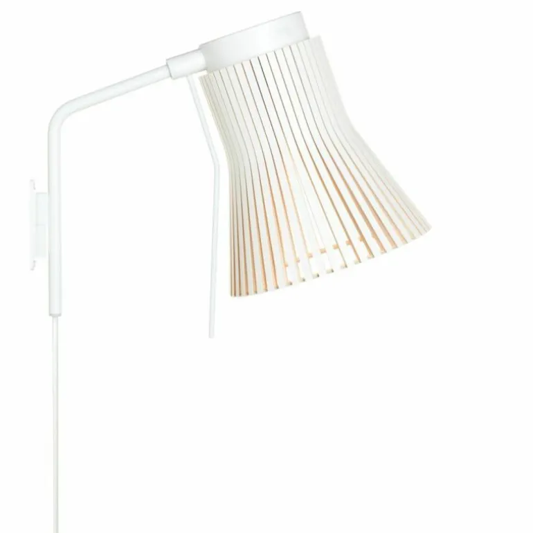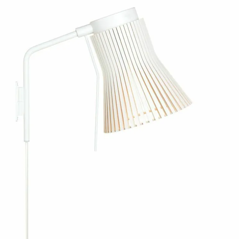 De Petite 4630 Wandlamp Wit van Secto Design heeft een hoogte van 31 centimeter, een diepte van 37 centimeter en een diameter van 10 centimeter. De kabel heeft een lengte van 200 centimeter. De wandlamp is verkrijgbaar in naturel berkenhout, wit gelamineerd berkenhout, walnoot fineer met een witte kabel en een wit stalen frame en zwart gelamineerd berkenhout met een zwarte kabel en een zwart stalen frame. Petite 4630 is uitgerust met een fitting die geschikt is voor LED max. 20W. of GX53 Base LED max. 20W en is geschikt voor lampen uit de energieklassen A++ tot en met B.