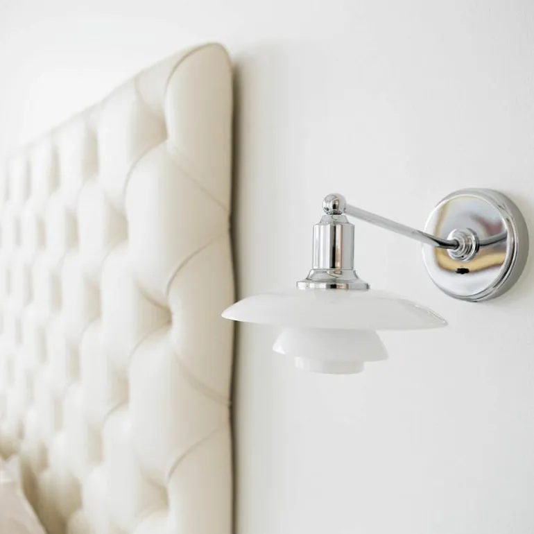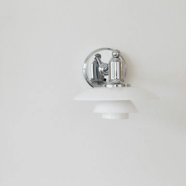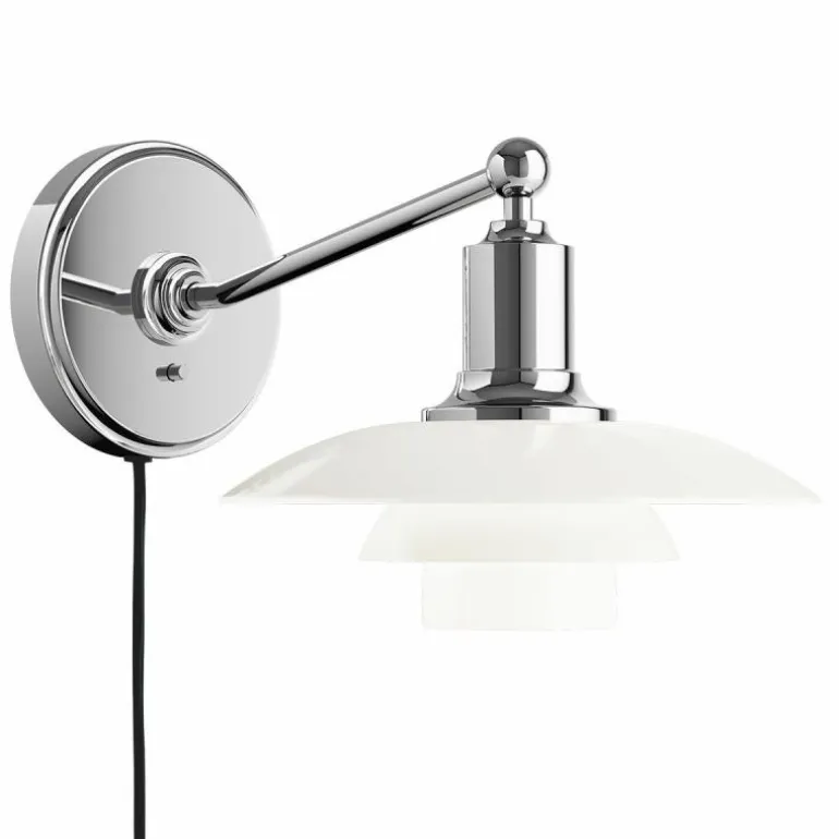 Na het succes van de PH 2/1 hanglamp kon een wandmodel natuurlijk niet uitblijven. Net zoals de hanglamp beschikt de PH 2/1 wandlamp geheel volgens het PH 3 principe over drie schermen van drie lagen mondgeblazen opaalglas, waarbij het bovenste scherm een diameter van 20 centimeter heeft. Het opaalglas is aan de bovenzijde glanzend en aan de onderzijde gezandstraald mat, hierdoor ontstaat er een zachte en gelijkmatige lichtspreiding en wordt het licht nog steeds grotendeels naar beneden gericht. De schermen zijn bevestigd aan een arm en ophanging van getrokken messing en een wanddoos (Ø12 centimeter) van getrokken aluminium, al deze onderdelen beschikken over een hoogglans verchroomde afwerking. De schakelaar zit bij deze lamp op de wanddoos.r