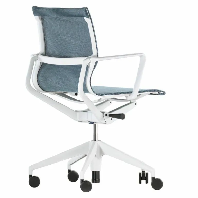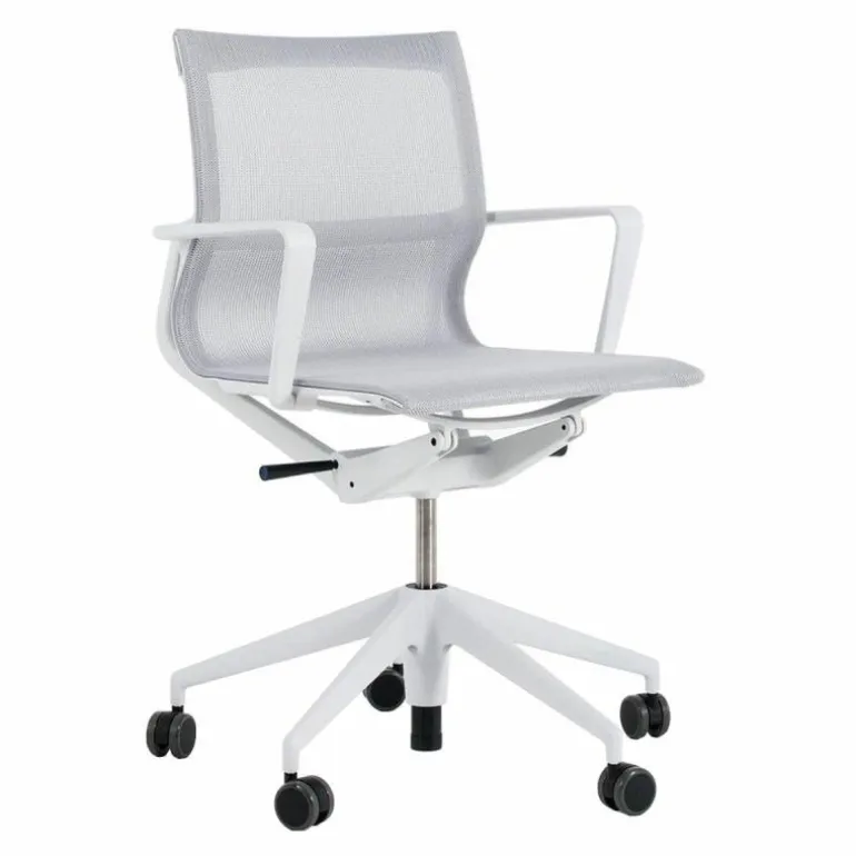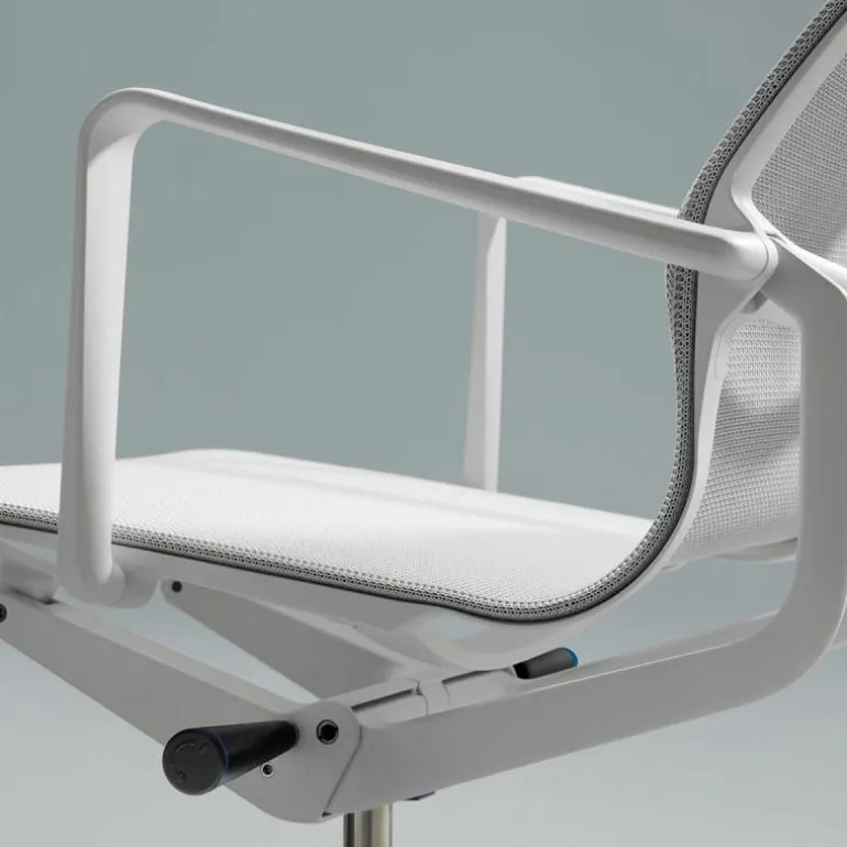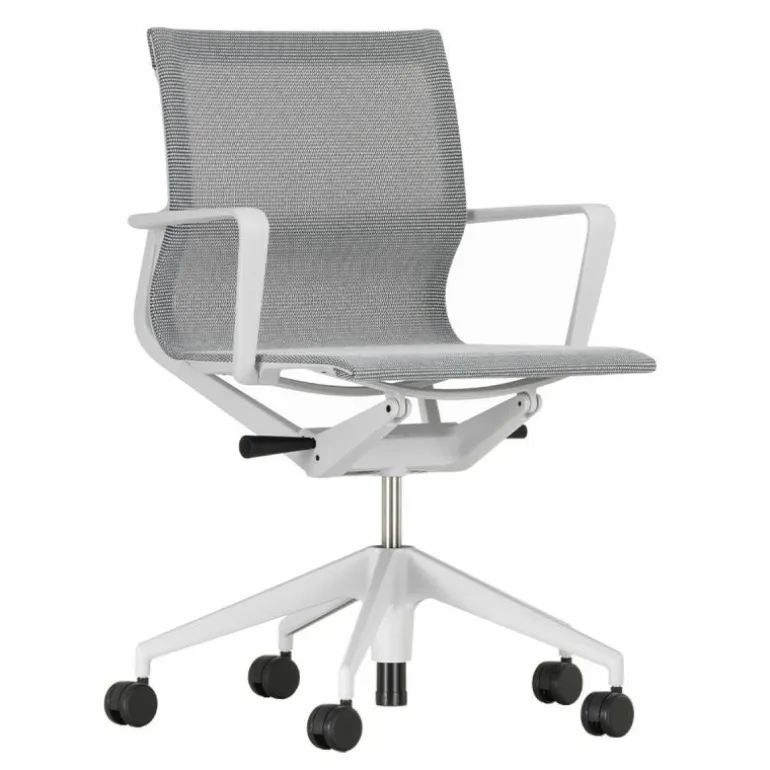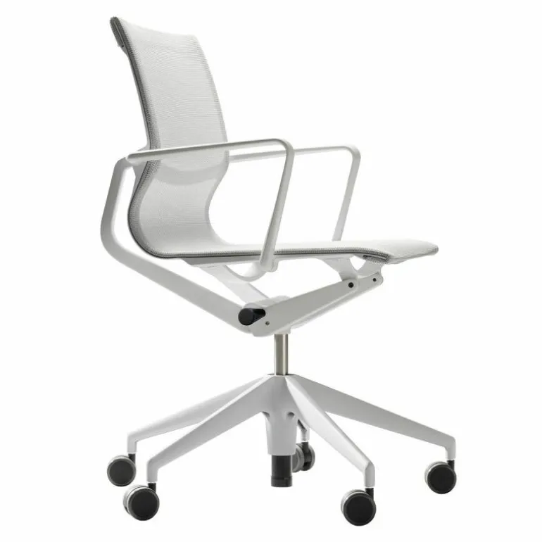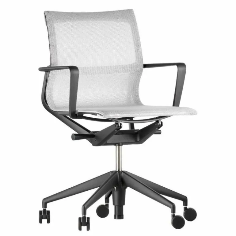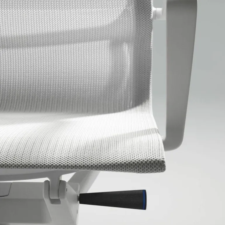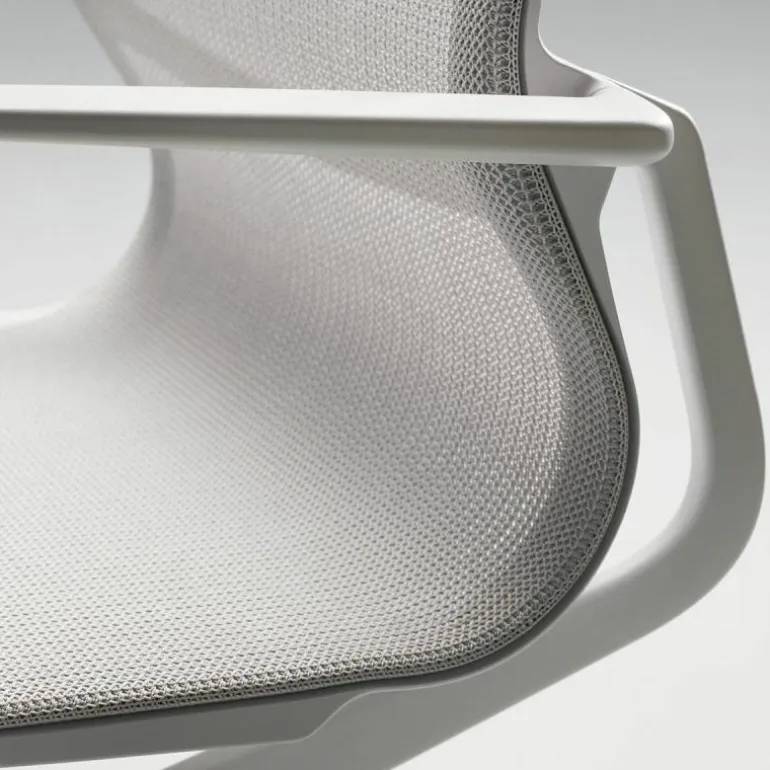 Voor de zitting is gebruik gemaakt van TrioKnit of FleeceNet. TrioKnit is een sterke geweven stof met een lichte glans. Door de stevige kwaliteit is de stof zeer geschikt voor gebruik in kantoormeubelen. FleeceNet is een technisch netweefsel van polyester en polyamide waar chenillegaren doorheen geweven is. Door het in elkaar weven van verschillende garen ontstaan er verschillende kleurcombinaties. Het frame en onderstel van de stoel zijn van aluminium en hebben een zwarte of licht grijze poedercoating gekregen. Zowel de zitting als het onderstel zijn verstelbaar. Hierdoor kunt u de stoel aanpassen naar uw wensen. Onder het stervoet onderstel zijn standaard zachte wielen bevestigd geschikt voor harde vloeren.r