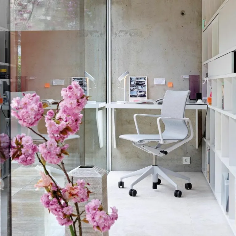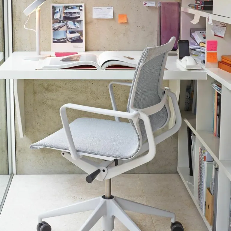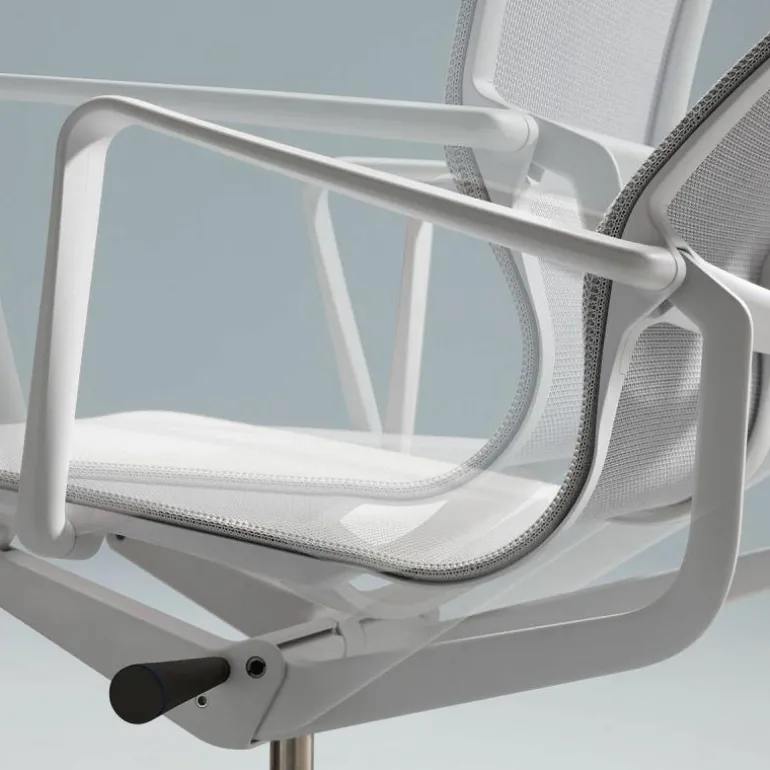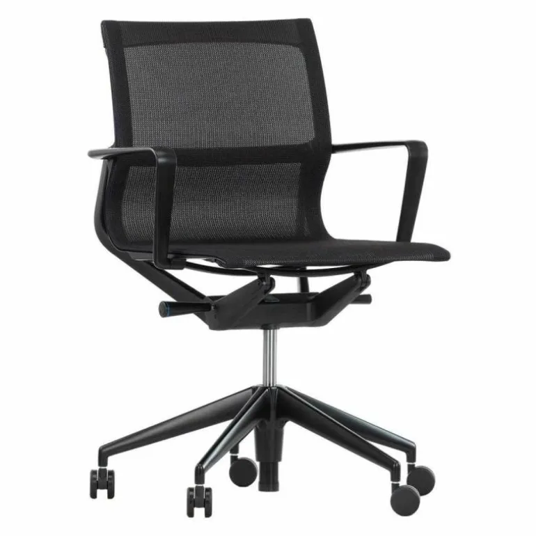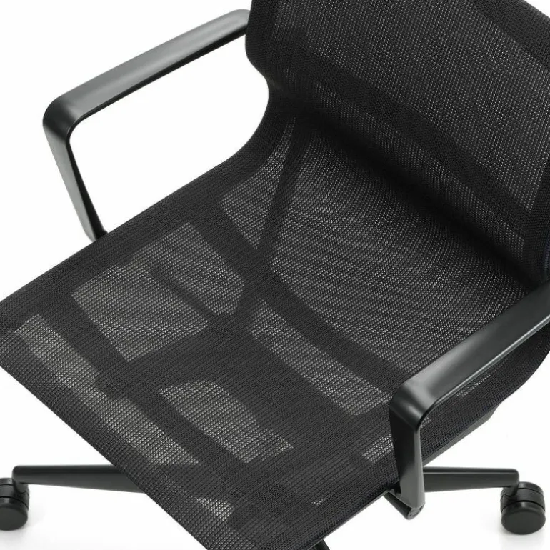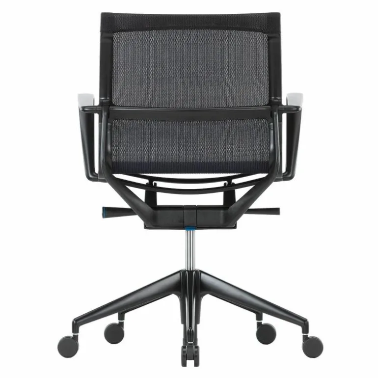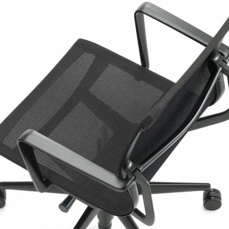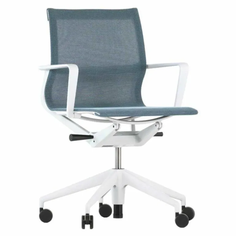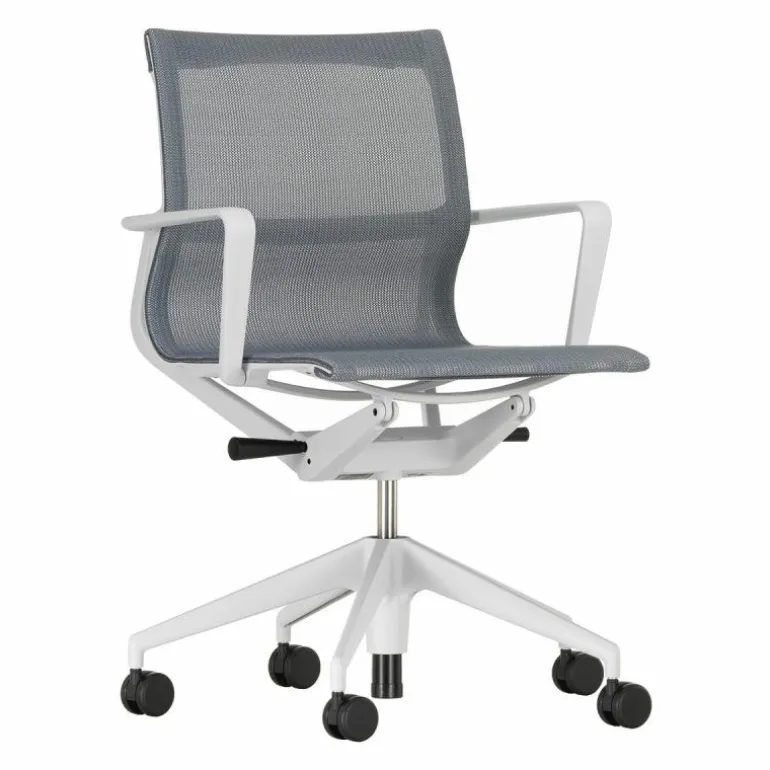 Voor de zitting is gebruik gemaakt van TrioKnit of FleeceNet. TrioKnit is een sterke geweven stof met een lichte glans. Door de stevige kwaliteit is de stof zeer geschikt voor gebruik in kantoormeubelen. FleeceNet is een technisch netweefsel van polyester en polyamide waar chenillegaren doorheen geweven is. Door het in elkaar weven van verschillende garen ontstaan er verschillende kleurcombinaties. Het frame en onderstel van de stoel zijn van aluminium en hebben een zwarte of licht grijze poedercoating gekregen. Zowel de zitting als het onderstel zijn verstelbaar. Hierdoor kunt u de stoel aanpassen naar uw wensen. Onder het stervoet onderstel zijn standaard zachte wielen bevestigd geschikt voor harde vloeren.r