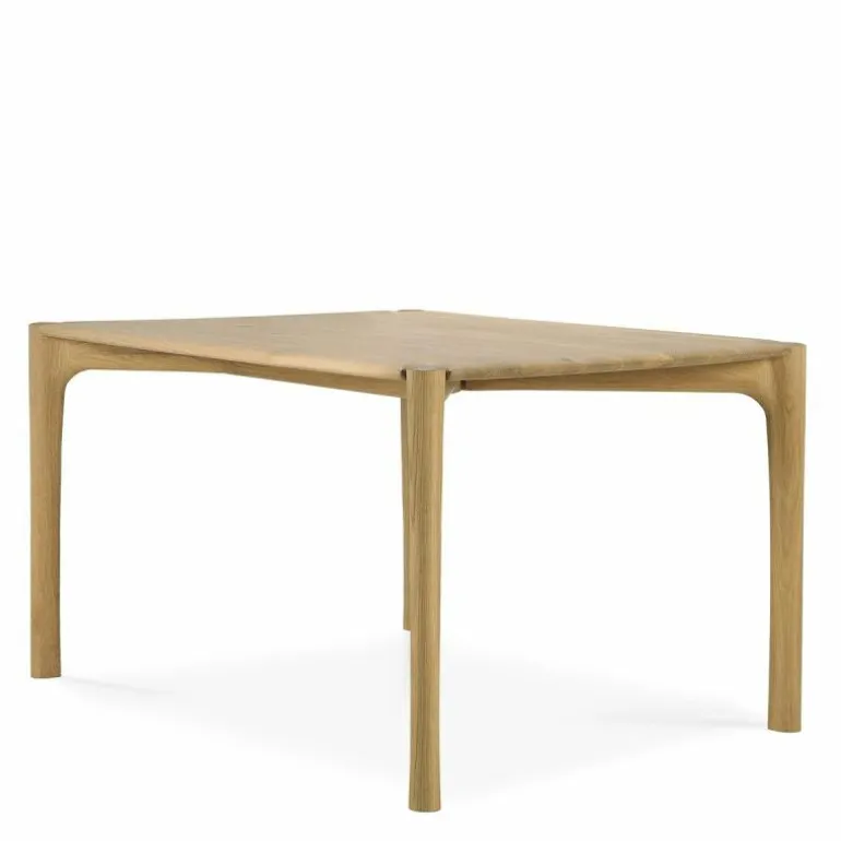 De PI-collectie is ontwikkeld met respect voor de natuurlijke eigenschappen van hout. Rondingen en nerven blijven zichtbaar en vormen samen een tafel die kracht en elegantie uitstraalt zonder zijn puurheid te verliezen. De organische vorm van het blad laat subtiel delen van het onderstel zien, wat het ontwerp een luchtig en open karakter geeft. Elk exemplaar wordt met de hand afgewerkt zodat het individuele karakter van het hout behouden blijft en elke tafel een eigen identiteit heeft.
