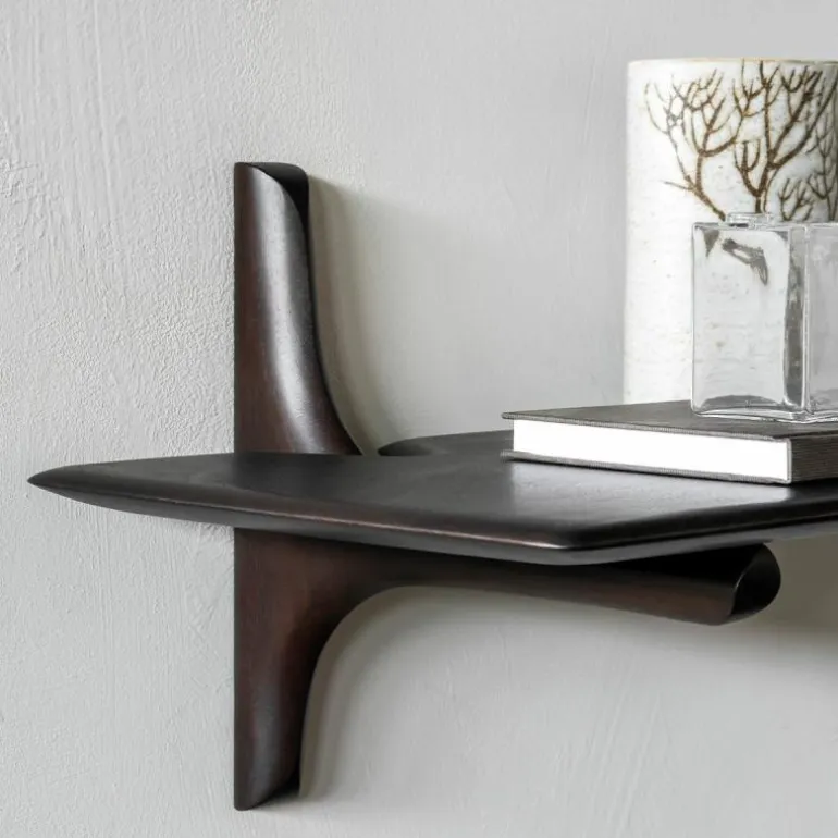 Elke wandplank in deze serie is vervaardigd uit zorgvuldig geselecteerd massief hout, waarbij de natuurlijke structuur behouden blijft. De afgeronde hoeken en subtiel golvende lijnen benadrukken het ambachtelijke karakter van het ontwerp en dragen bij aan een warme, natuurlijke uitstraling. Tegelijkertijd blijft de vormtaal ingetogen en consistent, waardoor de planken eenvoudig integreerbaar zijn in uiteenlopende interieurconcepten.