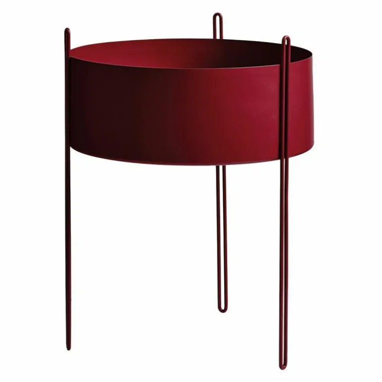 Het speelse design heeft een basis van gepoedercoat ijzer en is verkrijgbaar in drie afmetingen en in drie kleuren. Zo heeft de small variant een diameter van 15 centimeter en een hoogte van 15 centimeter en de medium variant een diameter van 40 centimeter en een hoogte van 35 centimeter. Het grote formaat heeft ook een diameter van 40 centimeter, maar is 55 centimeter hoog. De drie formaten zijn verkrijgbaar met een rode, blauwe en grijze afwerking. Tip: naast planten komen natuurlijk ook bloemen en tuinkruiden prachtig tot hun recht in de Pidestall. Gaan planten of bloemen nooit lang mee bij u? Geen probleem! De standaards lenen zich ook als opbergtafeltje voor bijvoorbeeld drank of tijdschriften. r