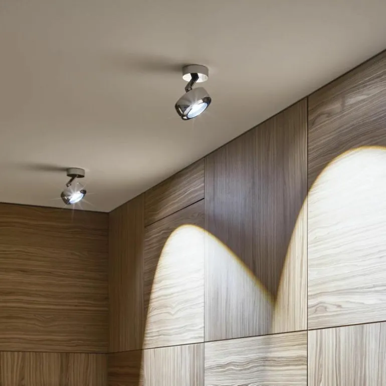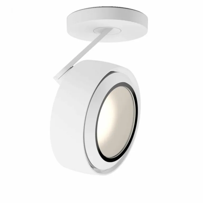 De Più R Alto 3D Plafondlamp is vervaardigd uit aluminium, chroom, staal en kunststof. De plafondlamp is verkrijgbaar in mat wit, mat zwart, mat zilver, mat goud, brons, rosé goud, phantom, zwart phantom, mat chroom en glanzend chroom. De plafondkap en arm zijn uitgevoerd in mat wit, mat zwart, mat chroom en glanzend chroom. Bovendien is de lens verkrijgbaar in verschillende kleuren: mat wit en mat zwart. r