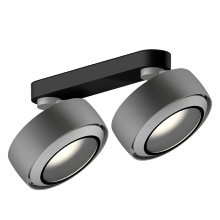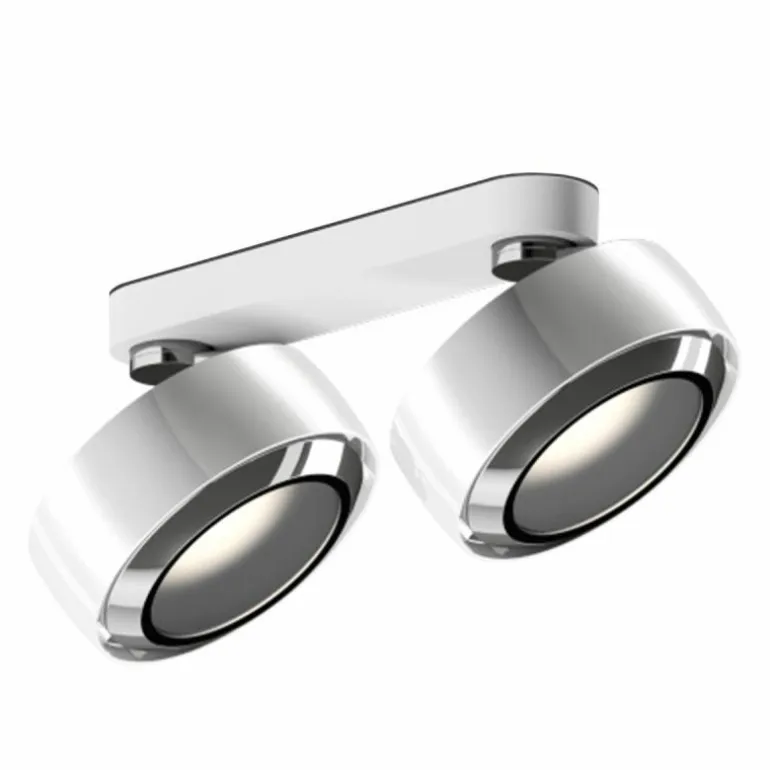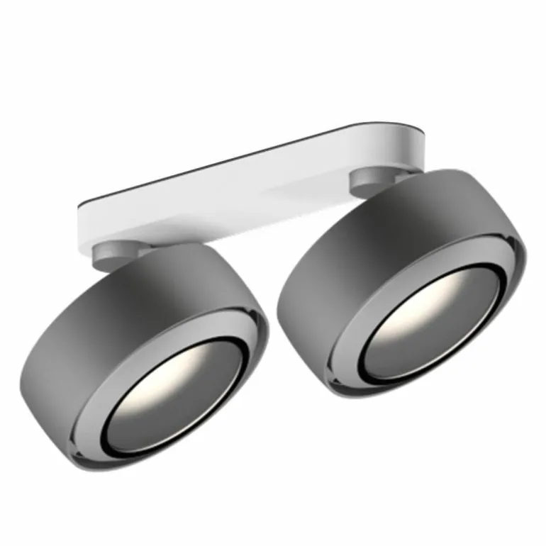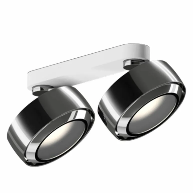 Dankzij het flexibele systeem is de Più R Alto Doppio Opbouwspot 360° draaibaar en kantelbaar tot een hoek van 52° waardoor bijzondere objecten in huis uitgelicht kunnen worden. Occhio biedt verschillende lenzen en inzetstukken waardoor elke spot individueel kan worden aangepast. Zo bepaal je dus per ruimte, situatie en sfeer het soort licht in een kamer. Bovendien is de plafondspot dimbaar door middel van een fase-afsnijdende dimmer. Anders dan andere Più uitvoeringen, beschikt de Più R Alto Doppio Opbouwspot over plat, kegelvormig glas welke de inzetstukken vasthoudt. Dankzij de VOLT module heeft de opbouwspot geen externe stroomvoorziening nodig: Plug en Play!r