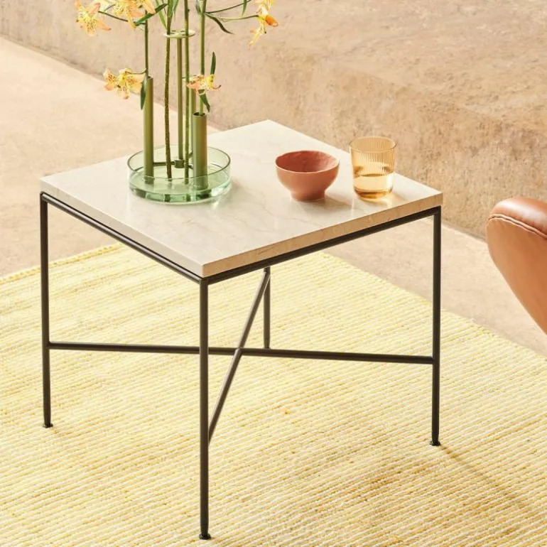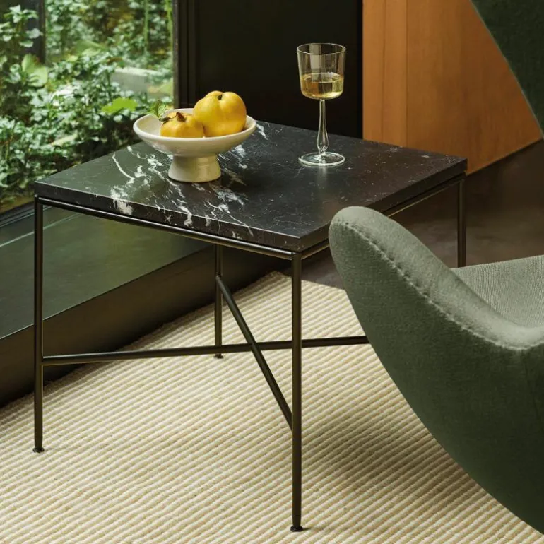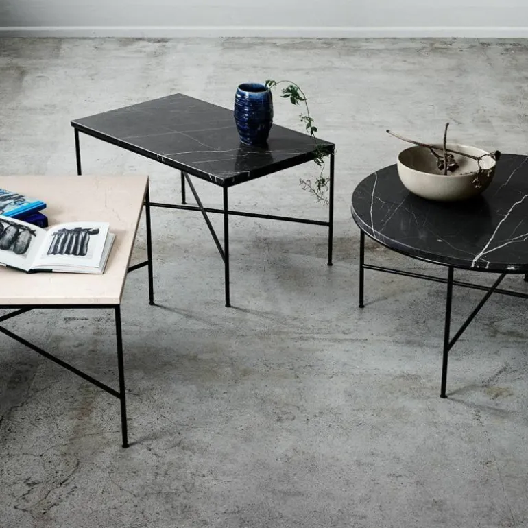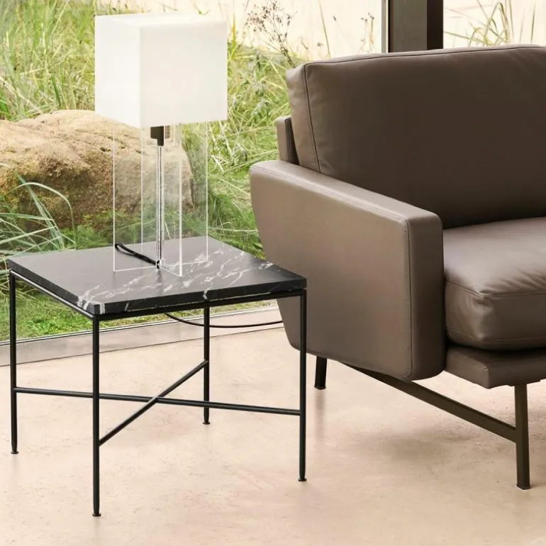 De Planner Salontafel heeft een stalen frame met smalle maar zeer sterke zwarte pootjes. Hierop rust een robuuste marmeren plaat. Deze is verkrijgbaar in twee varianten: zwart- of roomkleurig. Het zwarte marmer nodigt je met de kenmerkende open structuur uit het materiaal te verkennen. Het bevat natuurlijke witte aders en schaduwachtige kleurverschillen. De roomkleurige variant heeft een lichte en delicate uitstraling dat bij iedere uitvoering uniek is door de natuurlijke verkleuring en de schaduwachtige tinten in het marmer. r