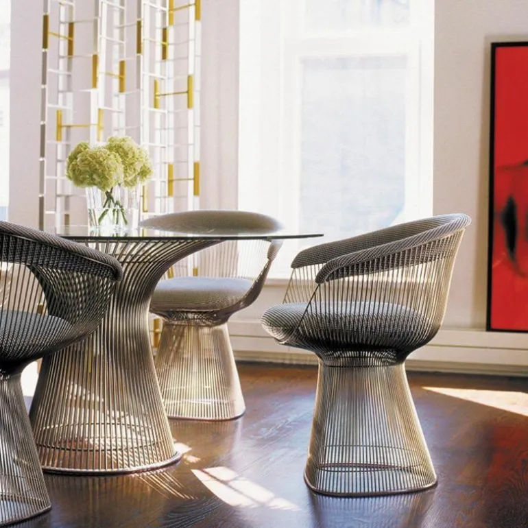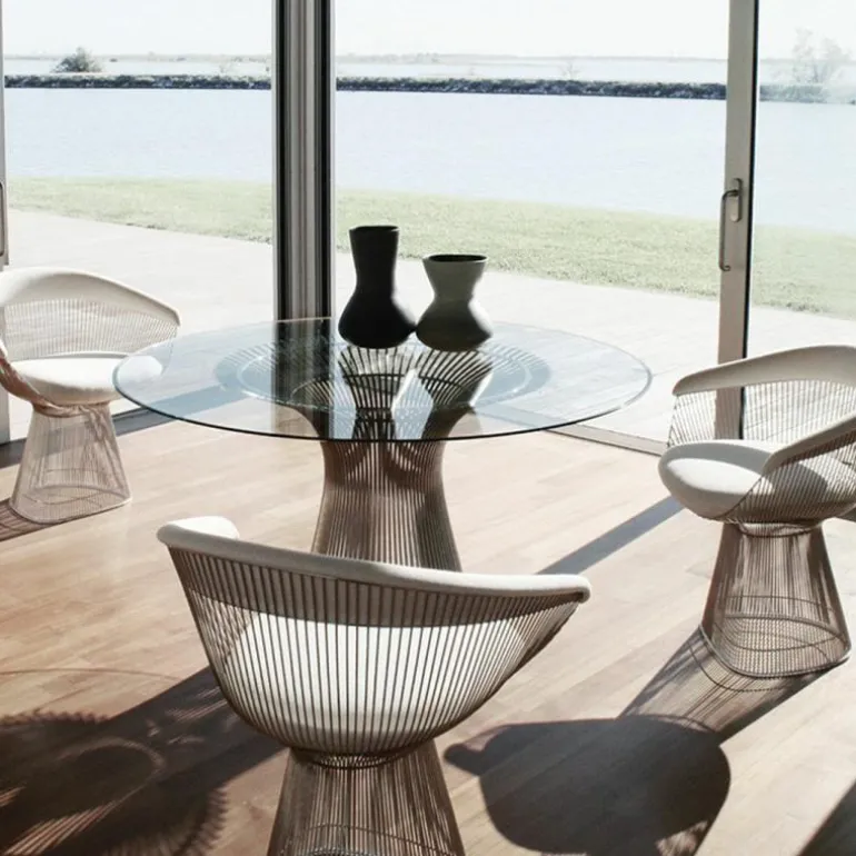 De Platner Eettafel behoort tot de uitgebreide collectie van Knoll. Het gigantische label heeft sinds 1938 een collectie met modern design, gemaakt van hoogwaardige kwaliteit. Inmiddels maken tientallen iconische meubelstukken zoals de Barcelona Chair en de Womb Chair hier deel van uit. Design van Knoll is niet alleen tijdloos door vormgeving, maar ook door het gebruik van de beste materialen. Hierdoor kunt niet alleen u, maar ook volgende generaties genieten van hetzelfde meubelstuk! r