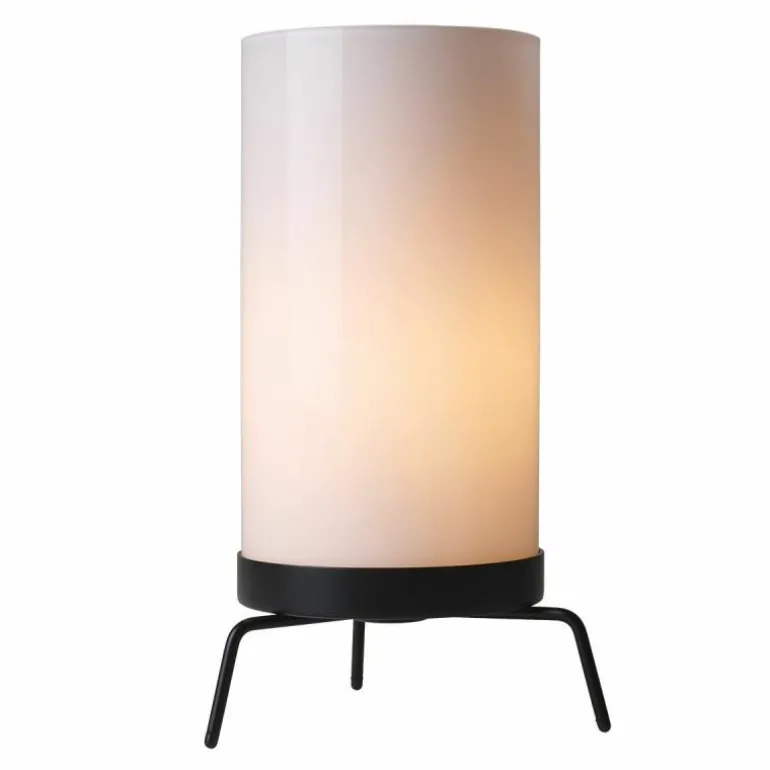 De PM-02 Tafellamp bewijst dat simpel ook mooi kan zijn. Het doordachte, praktische en minimalistische ontwerp bestaat louter uit een cilindrische mondgeblazen glazen diffuser die op een sierlijk en smal stalen onderstel van drie dunne pootjes rust. De diffuser schijnt een indirect zacht licht door het opalen glas, waardoor een warme sfeer wordt gecreëerd. r