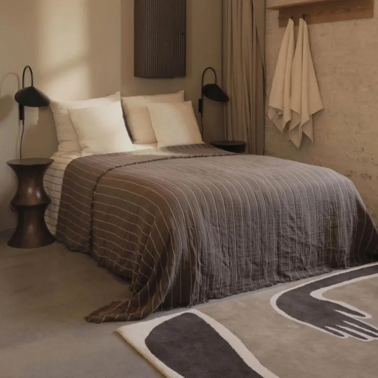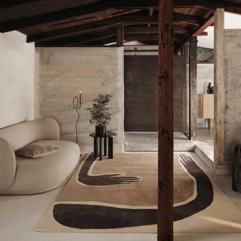 Het ontwerp van het Pose Vloerkleed onderscheidt zich door gestileerde armmotieven die zijn geïnspireerd op oude percussie-instrumenten in de vorm van onderarmen. Deze zogenaamde clappers symboliseren verbondenheid, creativiteit en expressie. Door dit motief ontstaat een patroon dat niet alleen visueel interessant is, maar ook een subtiele verwijzing bevat naar menselijke interactie en ritme. Het resultaat is een vloerkleed dat zowel functioneel als betekenisvol is en in iedere ruimte een krachtig accent legt.