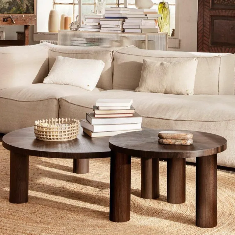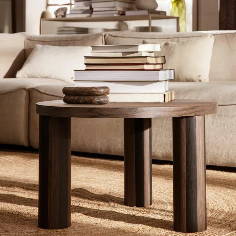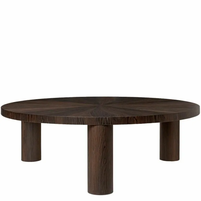 De salontafel is gemaakt van FSC-gecertificeerd eikenhout. Het hout is gerookt waardoor het zijn mooie donkere kleur krijgt. De poten zijn gemaakt van houtfineer en het tafelblad is eveneens gemaakt van eikenfineer met een kern van MDF. U heeft de keuze uit twee afmetingen. Daarnaast kunt u ook kiezen tussen een ‘Star’ houtnerf patroon of een ‘Lines’ houtnerf patroon. Bij het ‘Star’ patroon lopen alle houtnerven naar het midden van de tafel toe en vormen een ster. Bij het ‘Lines’ patroon lopen alle nerven van links naar rechts over het tafelblad. In totaal heeft u dus de keuze uit vier stijlvolle salontafels. r