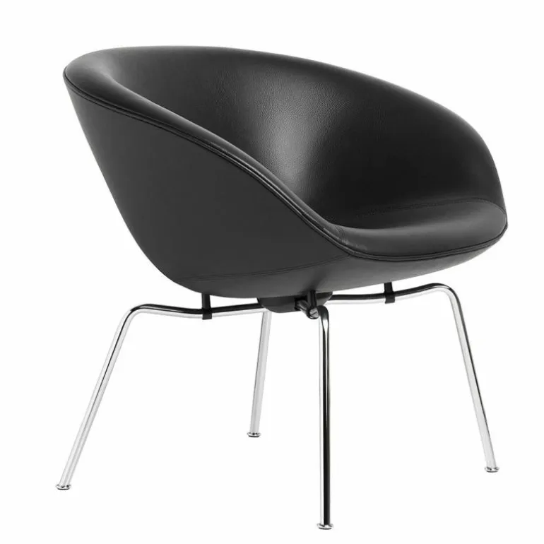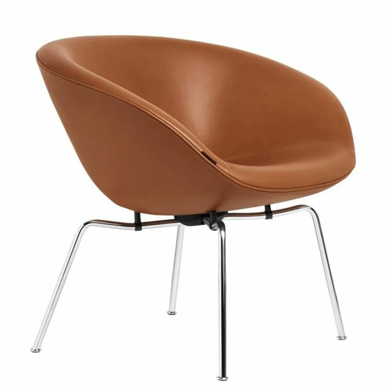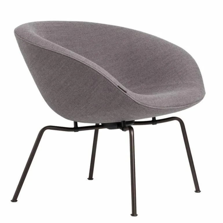 Bij de vernieuwde Pot Lounge Chair is het originele ontwerp van de Deense ontwerper gecombineerd met de duurzame en comfortabele materialen van nu. De Pot is verkrijgbaar in een veelvoud aan stoffen, waaronder drie exclusieve kleuren die door het merk Fritz Hansen zelf zijn ontwikkeld. Ook kan gekozen worden voor een walnoot of zwart kleurige leren bekleding. De voet is verkrijgbaar in chroom of donkerbruin gepoedercoat staal.