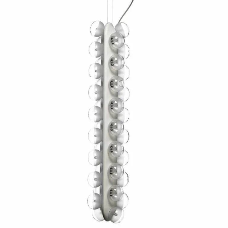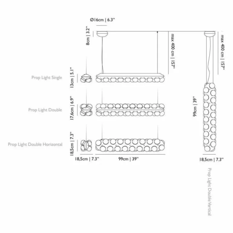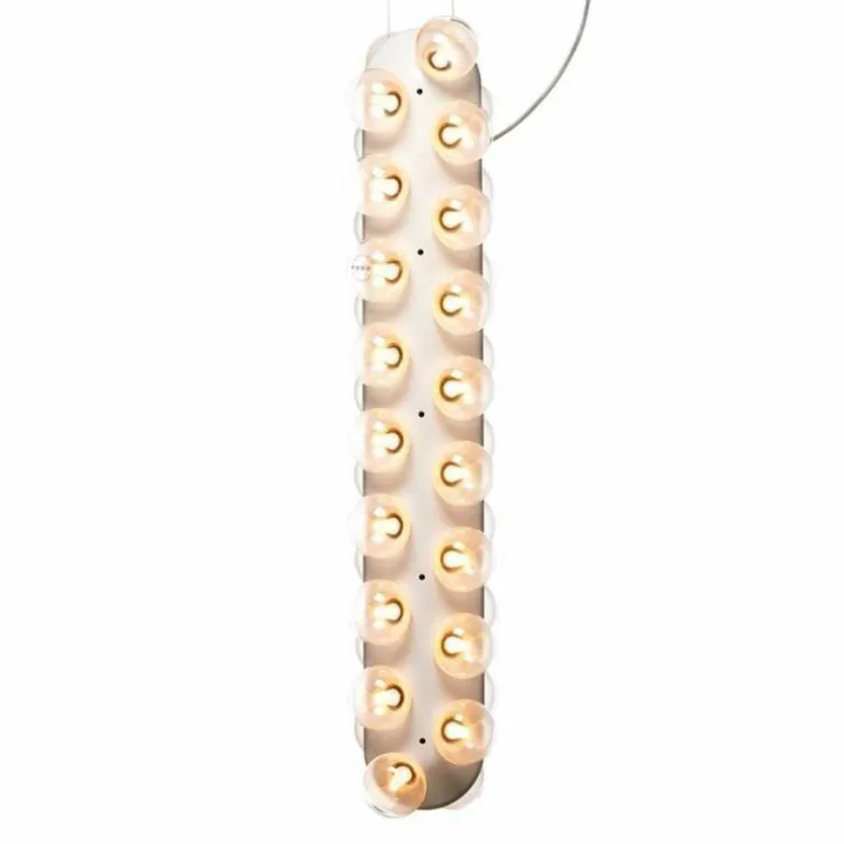 De Moooi Prop Light Double Vertical is een ontwerp van de Nederlandse designer Bertjan Pot en is opvallend, gedurfd en doordacht. De Prop-collectie kenmerkt zich door rijen ronde glazen lampen die steeds op een rond of langwerpig armatuur bevestigd zijn aan één of beide kanten. Een theatraal geheel, dat nog spectaculairder wordt door het feit dat de Prop Light er in alle denkbare varianten is: hangend, staand, horizontaal, verticaal of hellend. Bij iedere wens is een bijpassende Prop Light.r