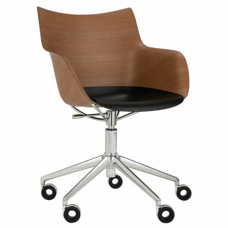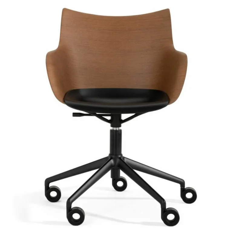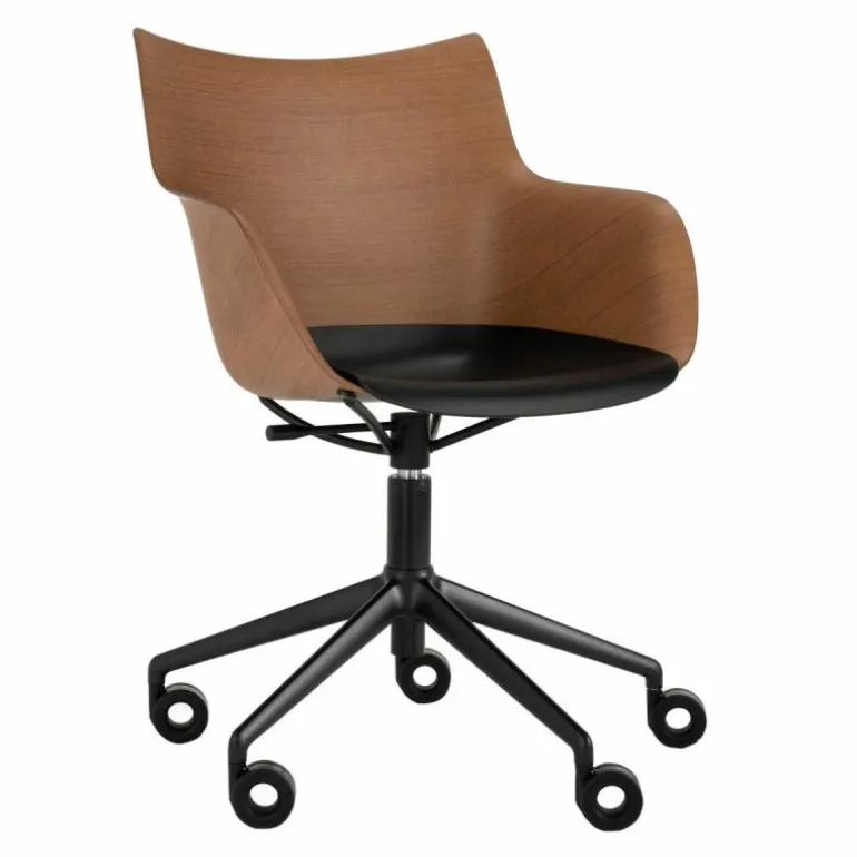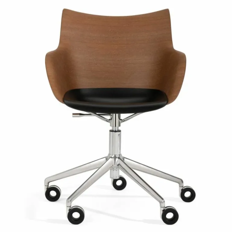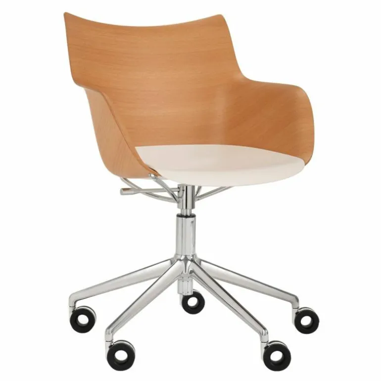 De innovatieve Kartell Q/Wood Bureaustoel is een ontwerp van Philippe Starck en behoort tot de Smart Wood collectie, een serie van driedimensionaal gevormde meubelen waarbij natuur en innovatie samenkomen. Deze serie stoelen is ontstaan vanuit het verlangen om zo respectvol mogelijk met de natuur en haar bronnen om te gaan, en met de innoverende technieken van Kartell kon deze droom ook daadwerkelijk worden verwezenlijkt. r