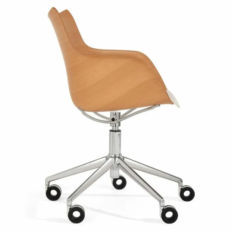 Het unieke comfort van de Smart Wood collectie beperkt zich niet alleen tot de eettafel en zithoek; met de komst van de P/Wood en Q/Wood bureaustoelen geniet u ook achter het bureau van het buitengewone design van Smart Wood. Het vierpotige frame heeft hierbij plaatsgemaakt voor een stervormige voet op wielen, wat voor een eenvoudige en flexibele plaatsing in de ruimte zorgt. De zitting is precies hetzelfde gebleven en bestaat uit een zitschaal met armleuningen uit 100% gevormd hout met een fineer van beukenhout. Ook het materiaal van het onderstel ongewijzigd; dit is gemaakt van staal dat is voorzien van een verchroomde of geverfde afwerking. r