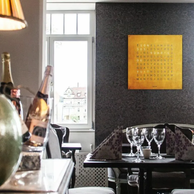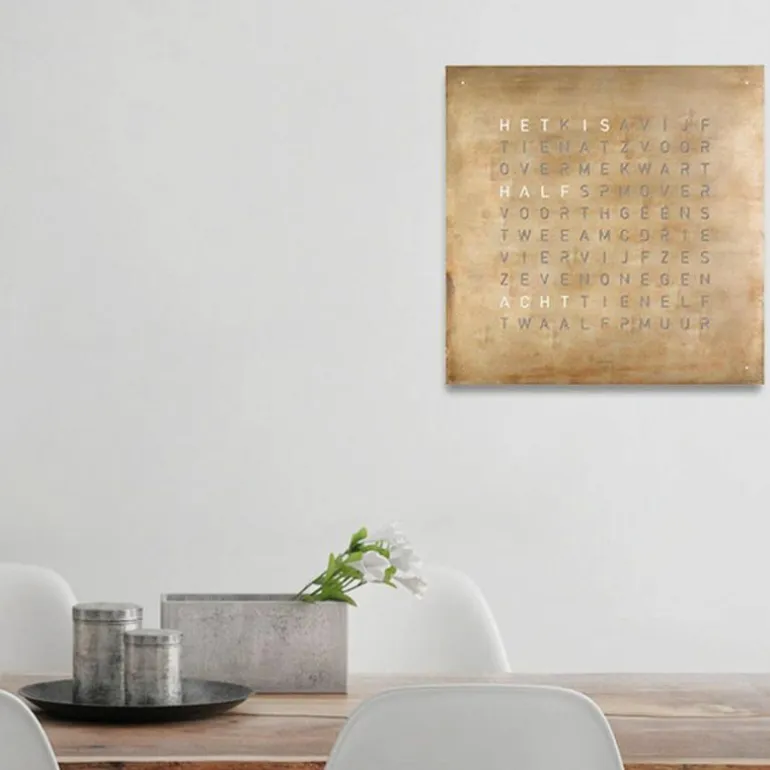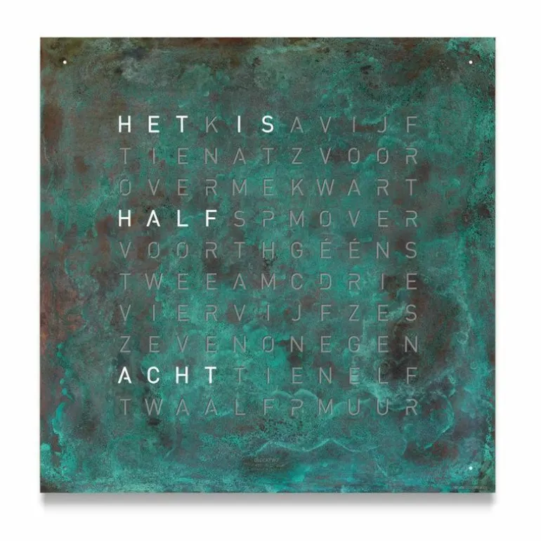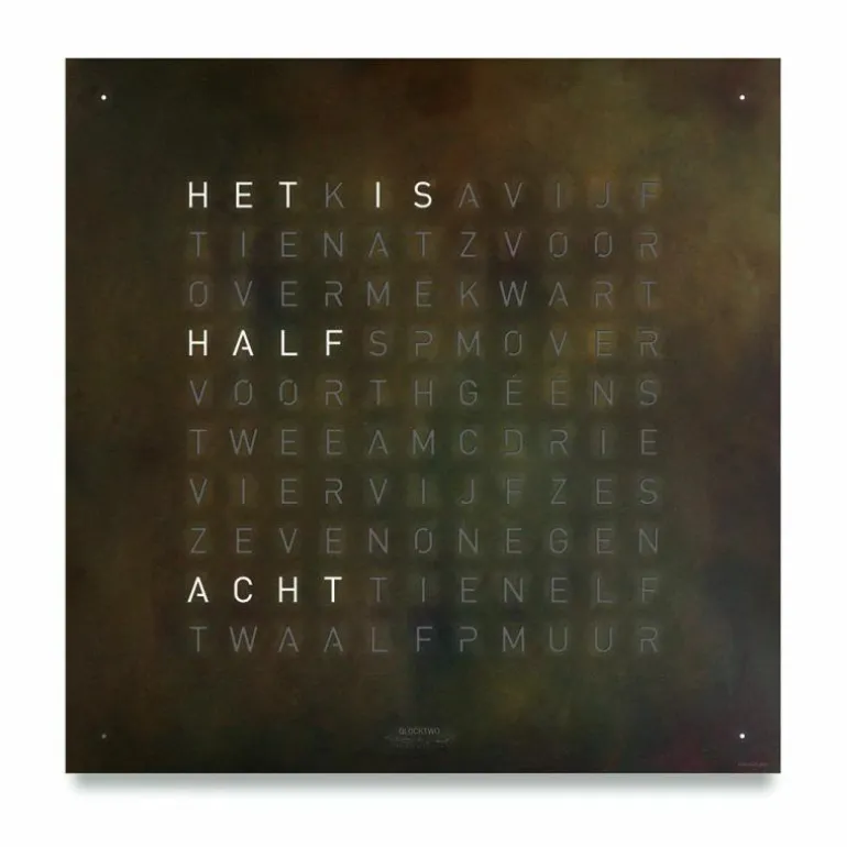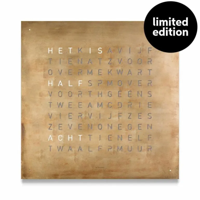 De Biegert & Funk QLOCKTWO Classic Creator’s Edition Klok is een bijzondere serie QLOCKTWO klokken. In deze serie van acht varianten is gebruikgemaakt van pure, luxe materialen. Het gebruik van onder andere ijzer en bladgoud maakt dat ieder exemplaar uniek is en zijn eigen kenmerken heeft. Iedere klok kan rekenen op de vernuftige QLOCKTWO techniek. Door middel van LED technologie wordt de tijd weergegeven in woorden. Iedere vijf minuten vertelt de klok hoe laat het is en aan de hand van oplichtende puntjes in de hoeken worden de overige minuten weergegeven. De intensiteit van het licht is te verstellen in verschillende standen en er is ook een seconde modus beschikbaar. Met de gratis app ‘Flashsetter’ van Biegert & Funk kan de tijd via uw smartphone eenvoudig op de seconde nauwkeurig naar de QLOCKTWO worden overgedragen.r
