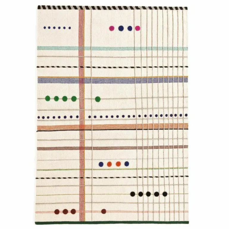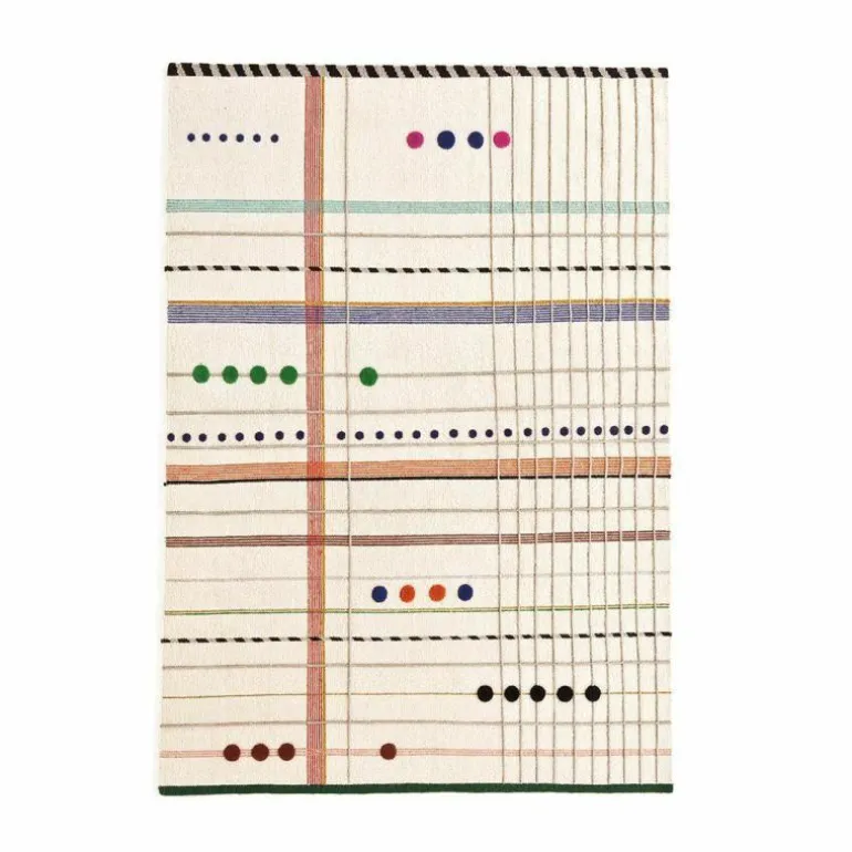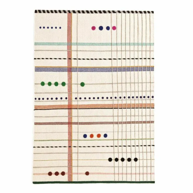 Het Nanimarquina Rabari 2 Vloerkleed is een ontwerp van Doshi Levien. De Rabari serie is een eerbetoon aan de vrolijke en schitterende wereld van de Rabari stam, uit de Kutch regio. Vrolijke kleuren staan centraal en worden regelmatig versierd met metallics. Het durven dragen van deze kleuren staat gelijk aan schoonheid in India. Nipa Doshi – zelf afkomstig uit India – herinnert zich maar al te goed hoe de vakvrouwen in haar tante’s werkplaats met zijn allen op een wit kleed zaten, met allerlei mooie borduursels om zich heen. Deze verschillende borduursels heeft Doshi in bijzondere patronen terug laten komen in de Rabari serie. Het vloerkleed bestaat uit 100% Nieuw-Zeeland wol en wordt met de hand gemaakt door middel van de Sumak techniek, een techniek die weven, knopen en borduren combineert. Deze techniek is niet gemakkelijk en het duurt dan ook 8 tot 10 weken voor één groot kleed helemaal af is. Het kleed heeft een hoogte van 13 millimeter en een knoopdichtheid van 124.000 knopen per vierkante meter. Wanneer u dit comfortabele kleed wilt gebruiken in bedrijfsgerichte omgevingen raden wij u aan een anti-vlekken behandeling te nemen. Om het kleed in zijn geheel te reinigen, kunt u hem het beste naar de stomerij brengen. Instructies voor kleine schoonmaakklusjes vindt u in de bijgevoegde PDF.r