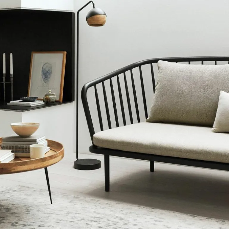 De lamp is gemaakt van FSC-gecertificeerd eikenhout en staal. De stalen kap en voet van de lamp zijn voorzien van een gekleurde poedercoating waarbij u kunt kiezen tussen zwart en wit. De witte variant heeft een koord van wit textiel en de zwarte variant heeft een koord van zwart textiel.