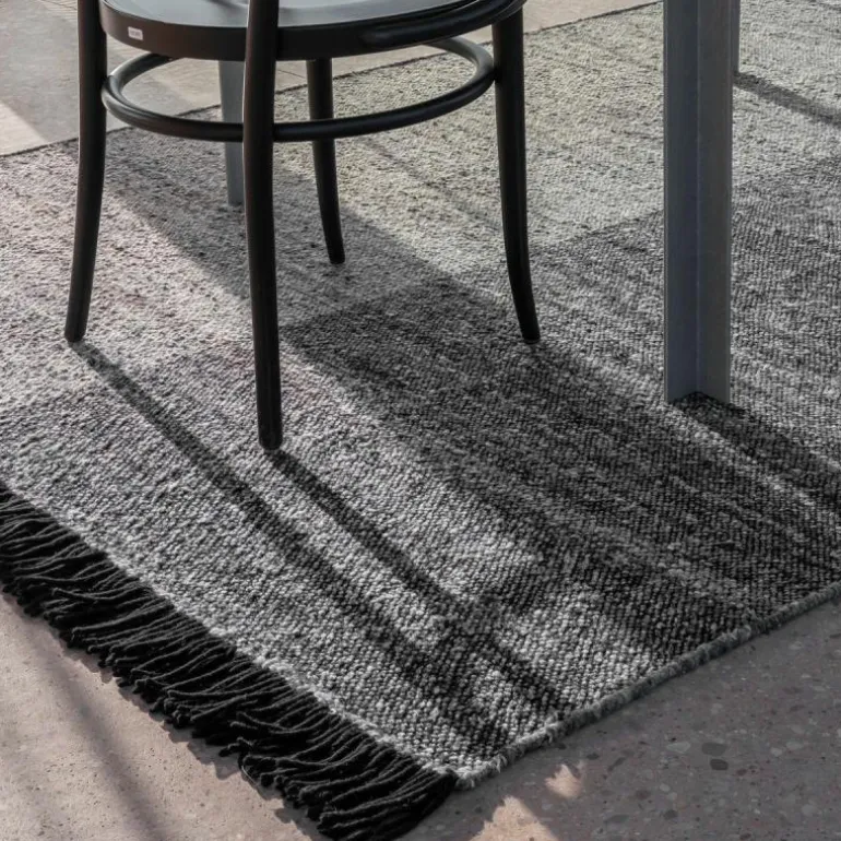 Voor het Re-Rug Vloerkleed wordt er per vierkante meter één kilogram afval-wol gebruikt waardoor er minder afval overblijft en de CO2-uitstoot wordt verminderd. Het vloerkleed is vervaardigd door middel van de Dhurrie-techniek wat terug te zien is in de platte structuur van het vloerkleed. Deze techniek biedt vele afwerkingen en maakt het gebruik van verschillende materialen mogelijk. Het vloerkleed is gemaakt van Nieuw-Zeelands wol, waarbij het gaat om 50% scheerwol en 50% hergebruikt wol. Het zachte wol is geverfd in zwart-wit, geel, blauw of groen. De gemarmerde, gerecyclede garen wisselen in dikte en kleur. r