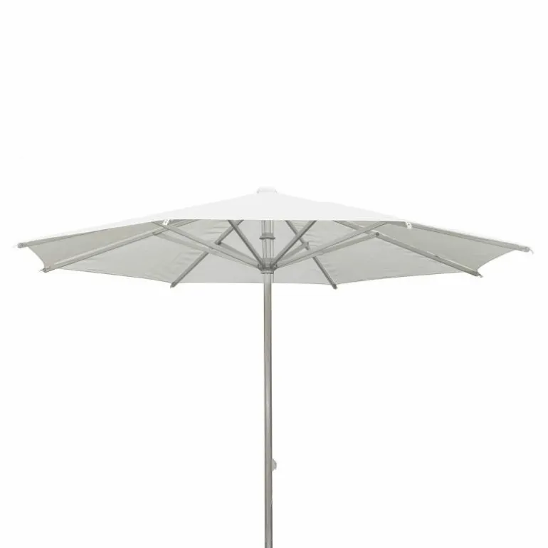 De Reflex Parasol heeft een frame van zilverkleurig aluminium en een doek van een Sunbrella of Batyline stof. Sunbrella is een water- en vuilafstotende stof, vervaardigd uit polyacrylaat. Het is UV-, kleur- en schimmelbestendig en daardoor tegen weer en wind bestand. Batyline is vervaardigd uit een polyestervezel die wordt gecoat met een laag PVC en daarna geweven. Door dit vervolgens samen te smelten, wordt de stof scheurbestendig en bestand tegen extreme weersomstandigheden. r
