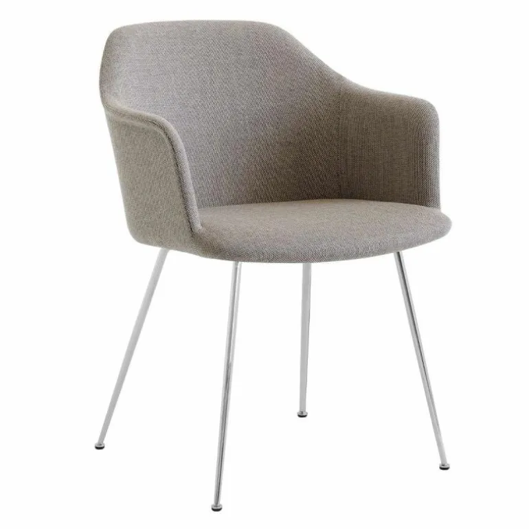 De basis van de armstoel is gemaakt van 100% gerecycled plastic en glasvezel wat deze armstoel bijzonder milieuvriendelijk en sterk maakt. De bekleding van het zitvlak kan in verschillende stoffen of leren afwerkingen worden geleverd. Extra comfort komt voort uit de met HR-schuim gevulde zitschaal. Het sterke, stalen voetstuk is te verkrijgen in de afwerkingen chroom, brons en zwart. Standaard wordt de armstoel geleverd met plastic glijders, maar kan op aanvraag ook worden geleverd met viltglijders. Neem een kijkje in de productfamilie voor een vergelijkbare armstoel zonder armleuning en/of wielen.r