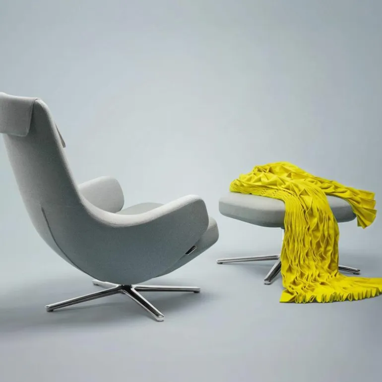 – Cosy kiezelgrijs, gepolijst aluminium onderstel, zithoogte 46 cm.r