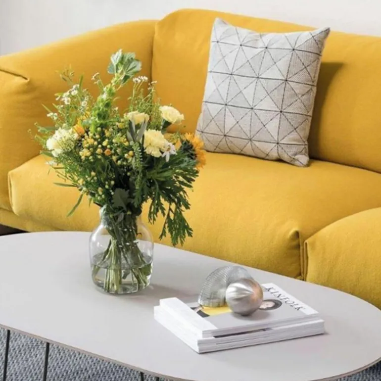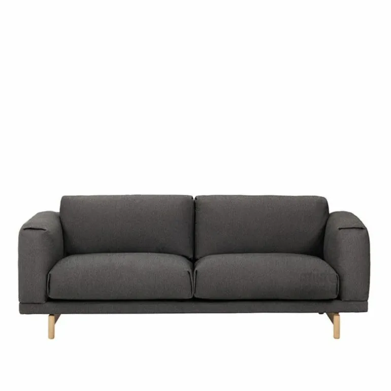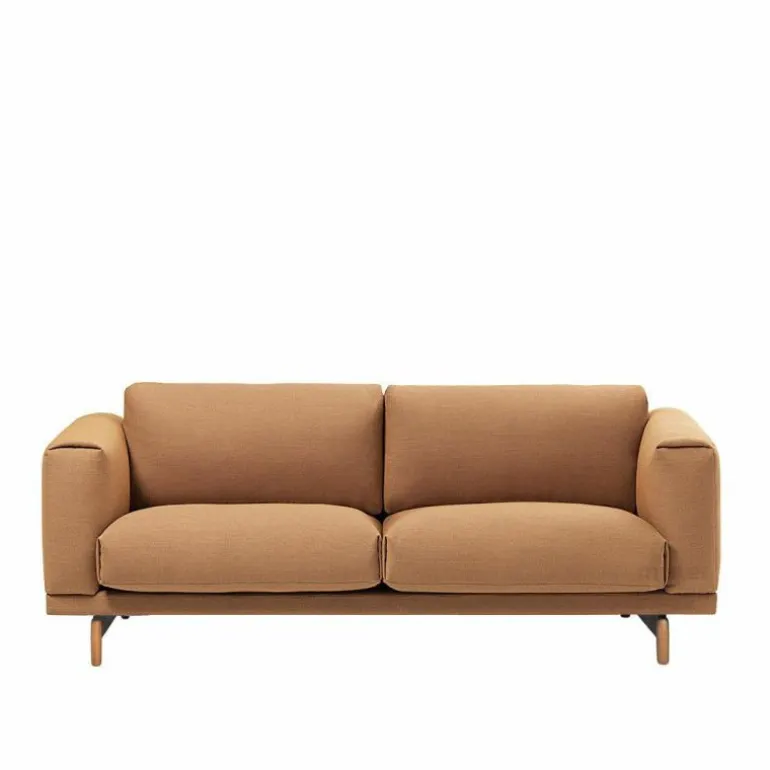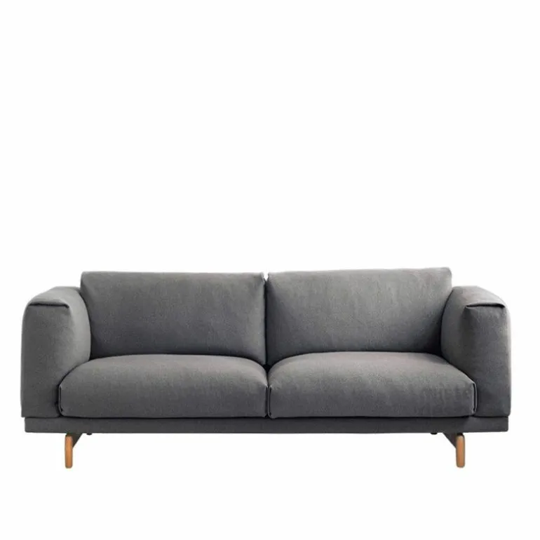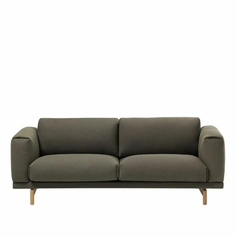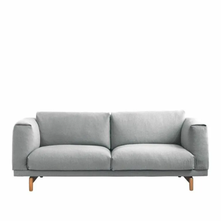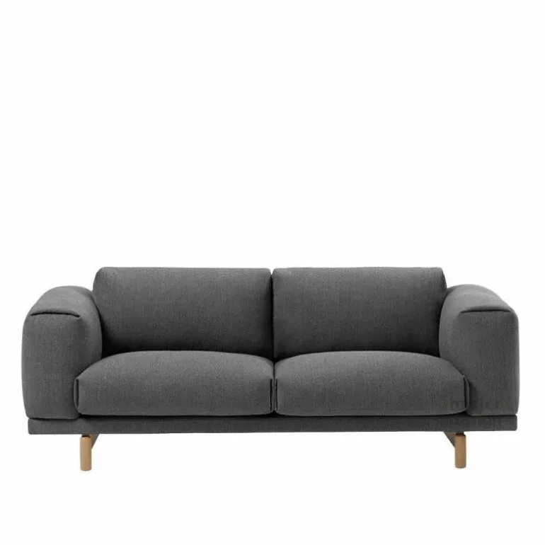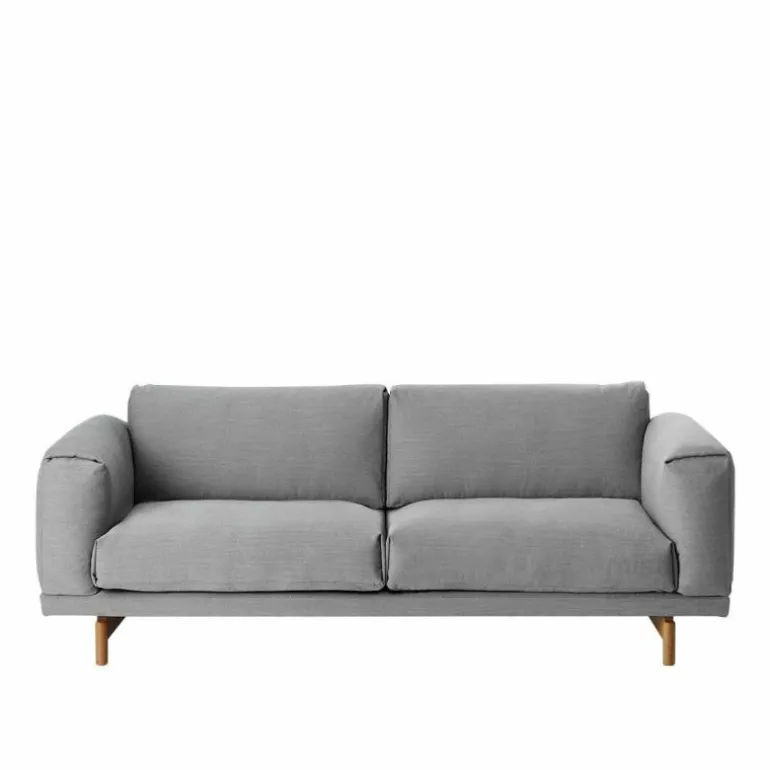 De Rest 2-zits Bank van Muuto is voorzien van een hoogwaardig stalen constructie en houten poten. Voor de poten heeft u de keuze uit naturel, grijze of zwarte eikenhouten poten. De kussens van de bank worden voorzien van een vulling bestaande uit koudschuim en veren. Wat betreft bekleding heeft u de keuze uit diverse stofgroepen in originele uitvoeringen. Doordat de hoes voorzien is van een ritssluiting kan deze gemakkelijk verwijderd worden. Muuto raadt aan deze alleen te laten reinigen in een stomerij.