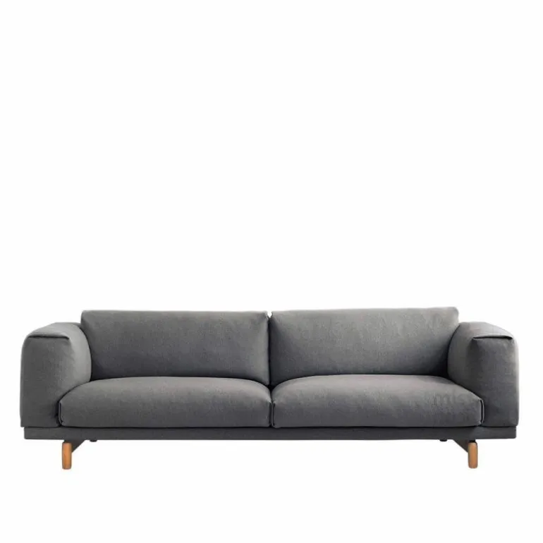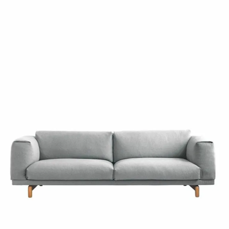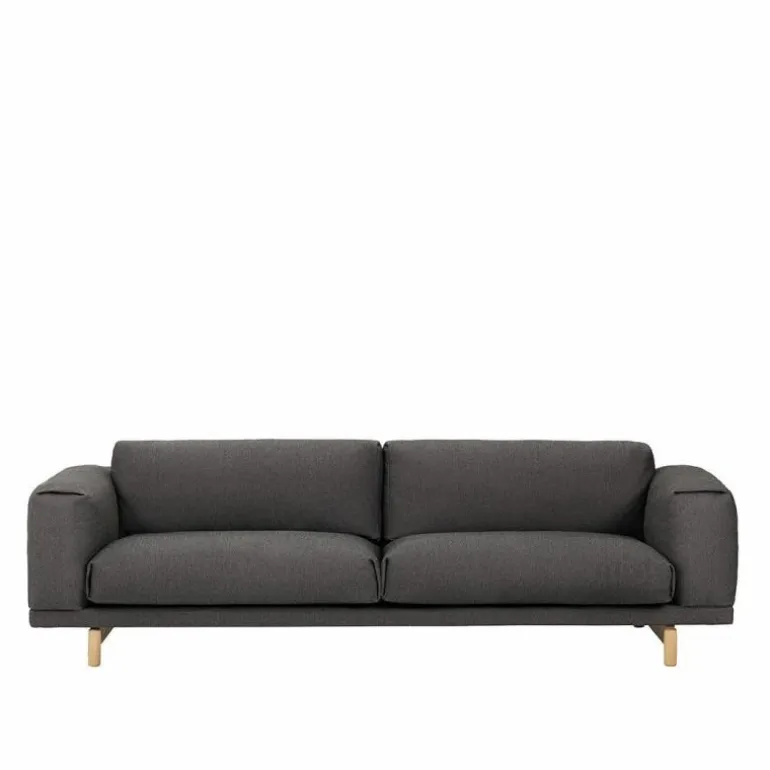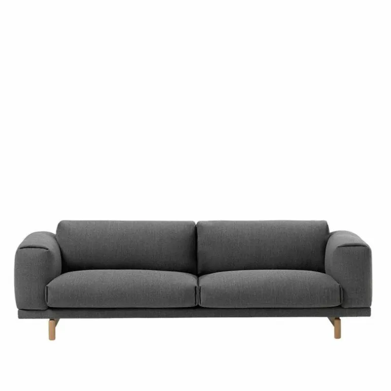 De Rest 3-zits Bank van Muuto heeft een kwalitatief hoogwaardig stalen constructie en is voorzien van eikenhouten poten. Wat betreft de afwerking van de eikenhouten poten heeft u de keuze uit naturel, grijs en zwart. Het hoogwaardige comfort waar de Rest sofa om bekend staat wordt gegarandeerd door een vulling bestaande uit koudschuim en veren. Voor de bekleding van de bank heeft u de keuze uit diverse stofgroepen in mooie uitvoeringen. Aangezien de hoes van de bank, door een aangebrachte ritssluiting, makkelijk afneembaar is. Muuto raadt aan deze alleen te laten reinigen in een stomerij.