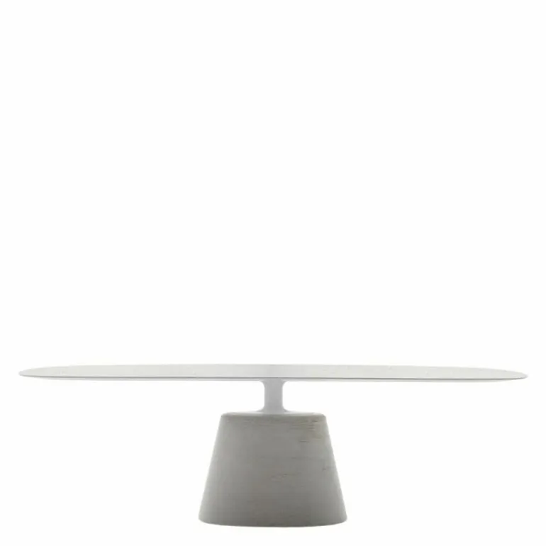 Dit rechthoekige, afgeronde tafelblad zorgt voor een andere beleving van ruimtelijkheid waardoor de tafel ook in vergaderruimtes en kantoorpanden ingezet kan worden. De eettafel weet niet alleen binnen mensen bij elkaar te brengen, maar ook buiten is de eettafel een verrassende verschijning. Plaats de eettafel op het terras of midden in de tuin om warme zomeravonden aan te spenderen. Om de tafel bij buitengebruik te beschermen is er op aanvraag een speciale regenhoes bij te bestellen. Hierdoor kunt u jarenlang genieten van de Rock Maxi Eettafel. r