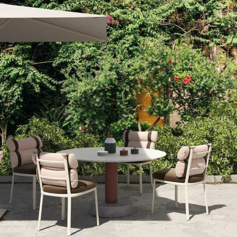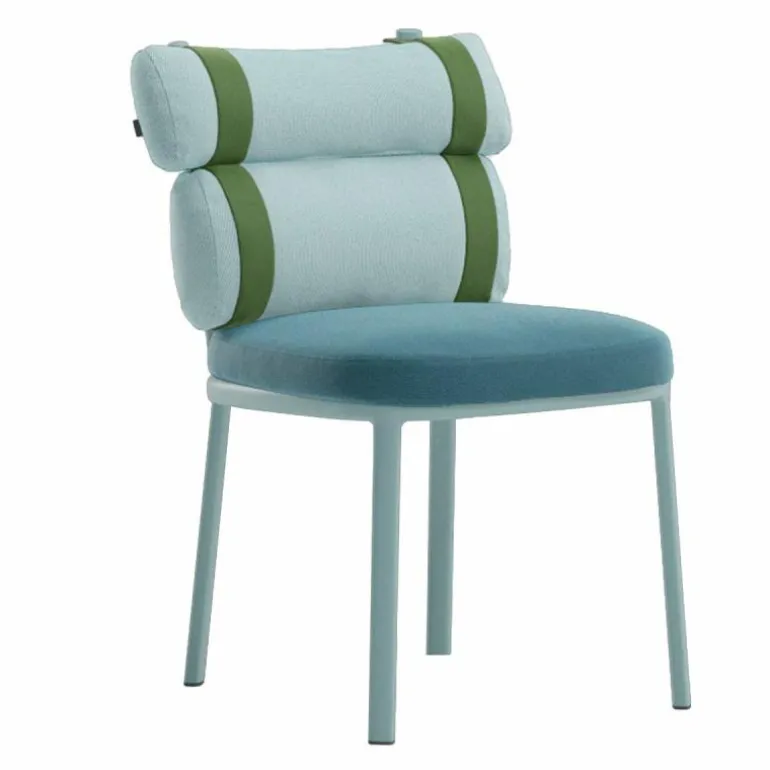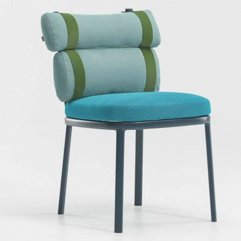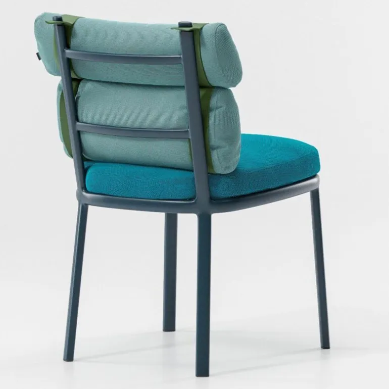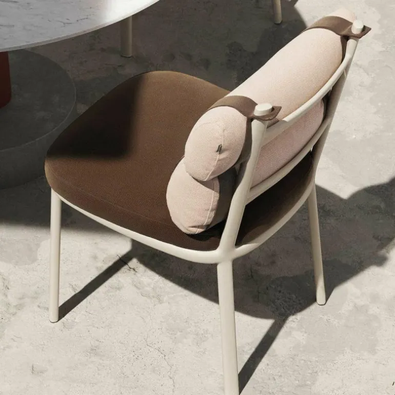 De bekleding van de kussens bestaat uit massagekleurde acrylstoffering en wordt behandeld met een waterafstotend middel, waardoor ze ideaal voor buitengebruik zijn. De kleuren van het zitkussen en de rugkussens zijn los van elkaar te bepalen, zo kunt u voor een stoel in dezelfde kleur bekleding kiezen of juist spelen met complementerende kleurencombinaties. Ook de riemen zijn verkrijgbaar in drie kleuren en net zoals het bij alle andere outdoormeubelen van Kettal het geval is, kan ook het frame van breed palet aan kleuren worden voorzien.r