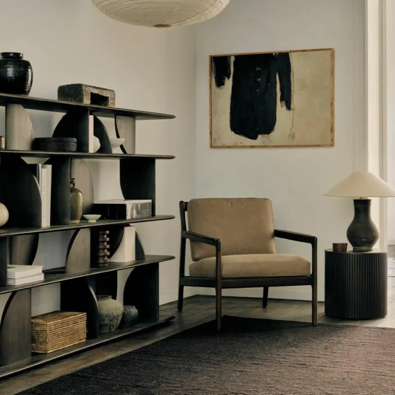 De Roller Max Bijzettafel is uitgevoerd in massief donkerbruin mahoniehout en afgewerkt met een beschermende laklaag. Door deze afwerking komt de diepe kleur van het hout volledig tot zijn recht en blijft het oppervlak beter beschermd tegen dagelijks gebruik. Het gebruik van massief hout betekent dat elke tafel unieke natuurlijke variaties in kleur en structuur laat zien. Dit versterkt de authenticiteit van het ontwerp en zorgt ervoor dat geen enkel exemplaar identiek is. Het ambachtelijke productieproces benadrukt het vakmanschap waarmee Ethnicraft haar collecties samenstelt.