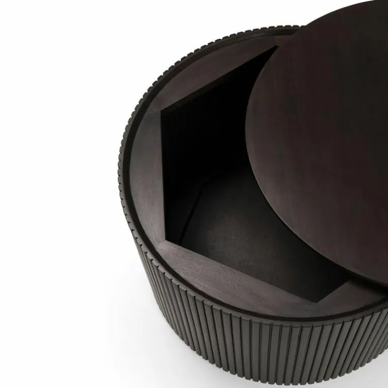 Een bijzonder kenmerk van de Roller Max Bijzettafel is de verborgen opbergruimte. Wanneer het blad wordt opgetild, verschijnt een zeshoekige opening die ruimte biedt voor het opbergen van kleine accessoires. Dit maakt de tafel geschikt voor uiteenlopende toepassingen, van het netjes opbergen van afstandsbedieningen tot het bewaren van tijdschriften of andere persoonlijke items. De verborgen bergruimte draagt bij aan een opgeruimde leefomgeving, vooral in compacte interieurs waar elke vierkante meter telt.