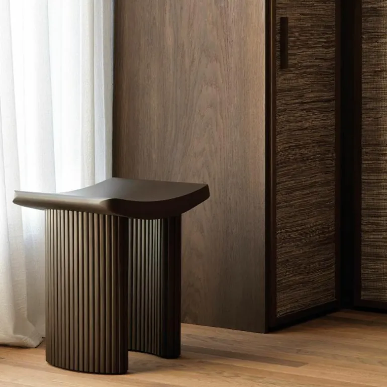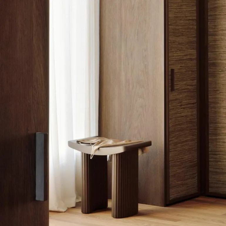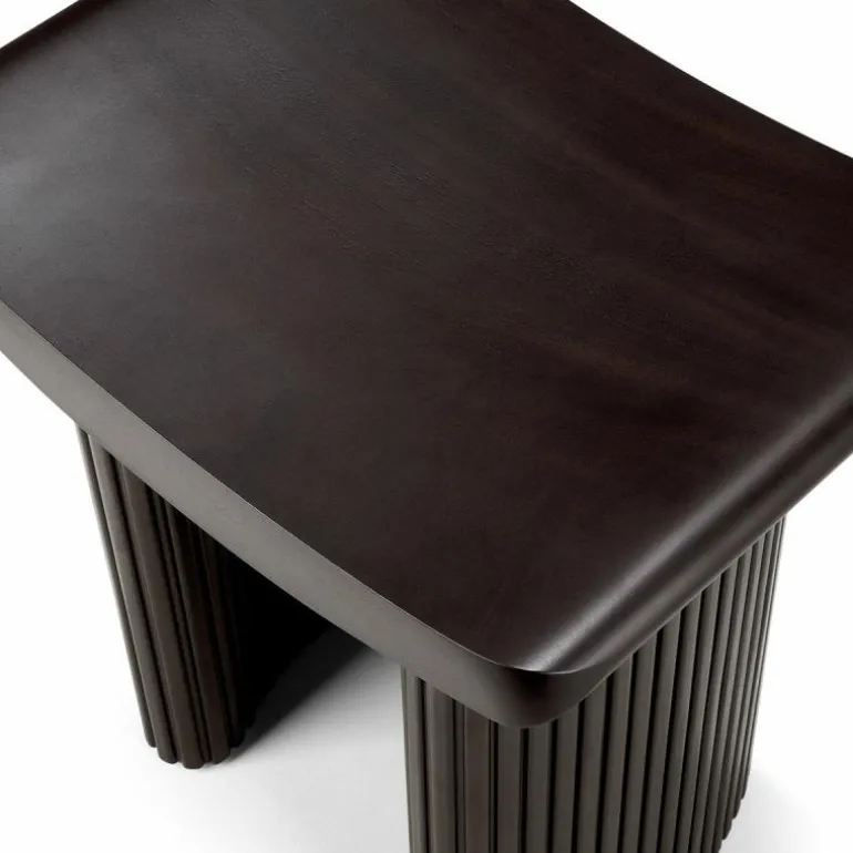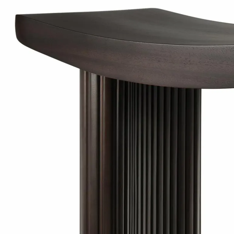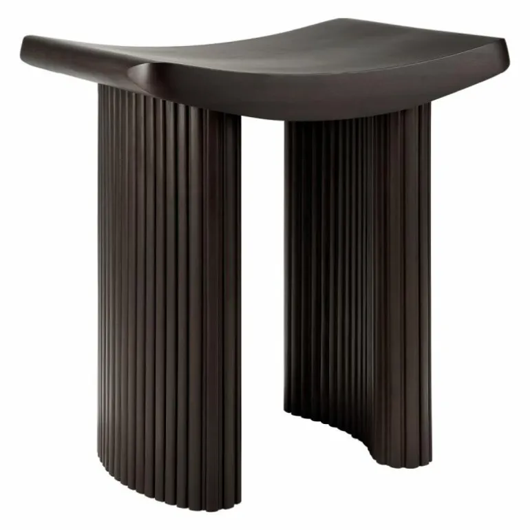 De kruk is gemaakt van donkerbruin gekleurd mahoniehout en is behandeld met een beschermende vernislaag. De Roller Max kruk heeft een afmeting van 48 cm breed bij 35 cm diep en heeft een zithoogte van 49 cm.